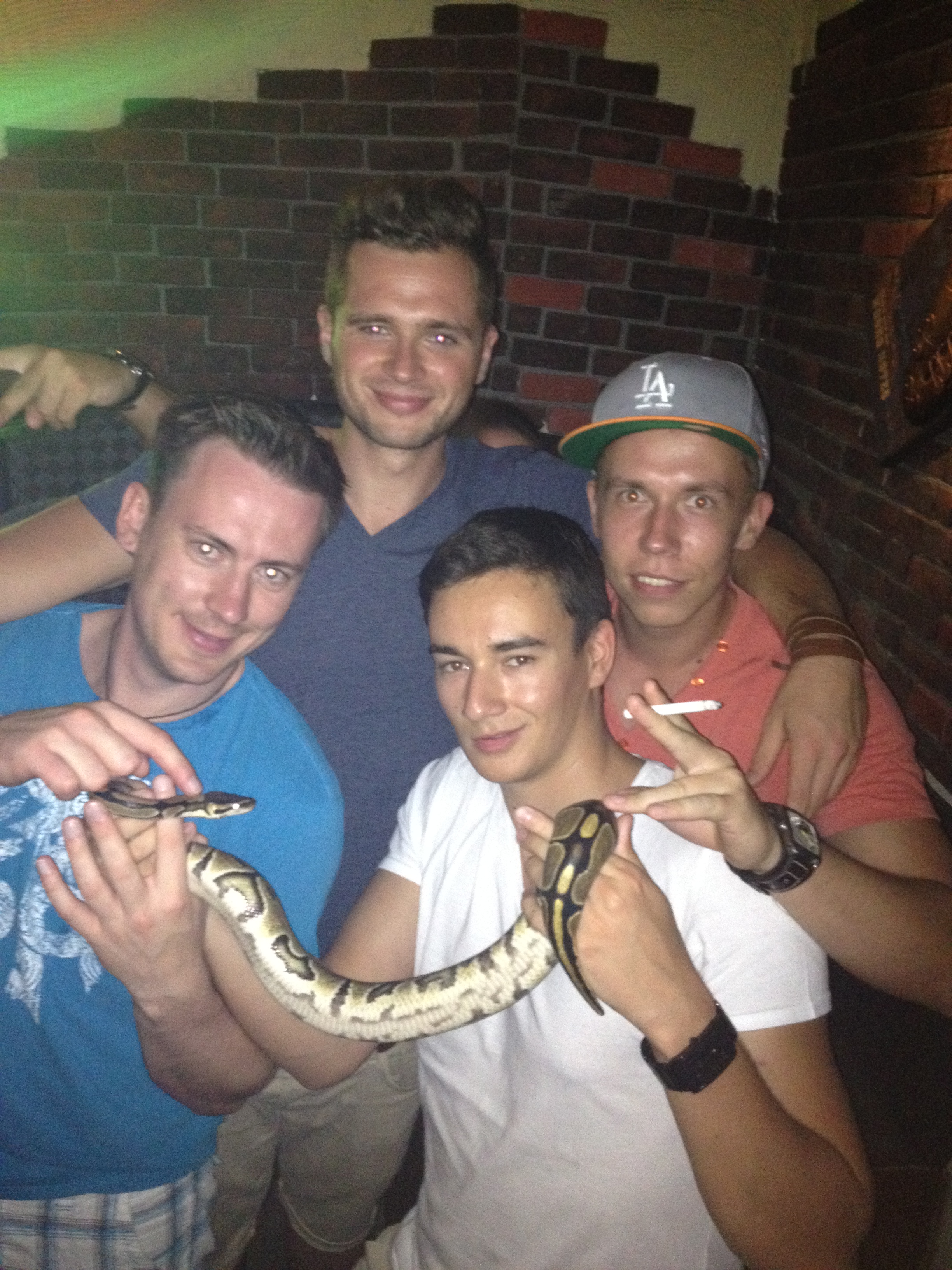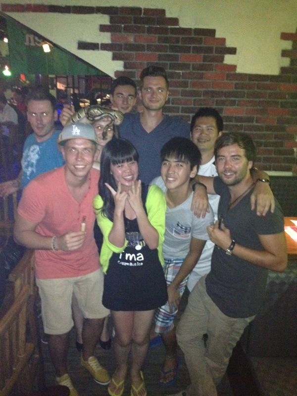 Abends sind wir dann nach Kending City gefahren… In einer Bar hatten ein paar Taiwanesen eine Schlange mit. Manche von uns hatten ein Gefallen an der Schlange gefunden und andere hatten Gefallen am Alkohol gefunden. Namen werden nicht genannt.
