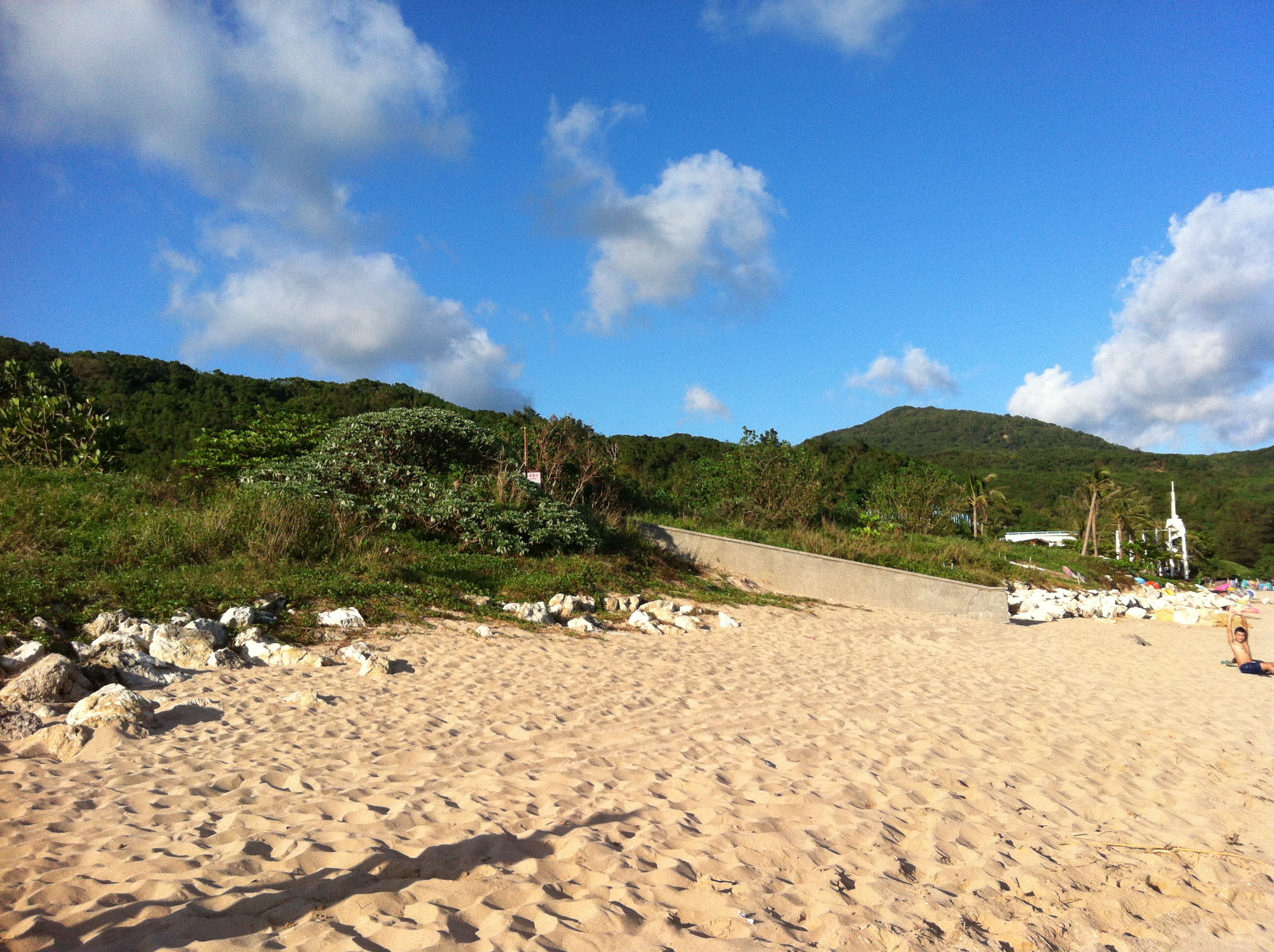 Als erstes sind wir zum South Bay gefahren. Wir waren leicht erschrocken, dass es dort nicht so schön war wie im Reiseführer. Ein paar Tage zuvor ist ein Taifun am Strand vorbei gezogen.