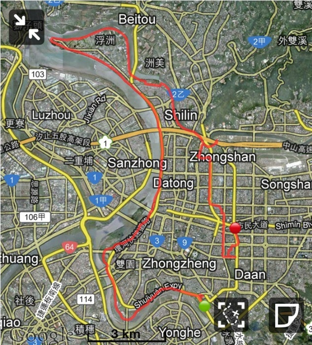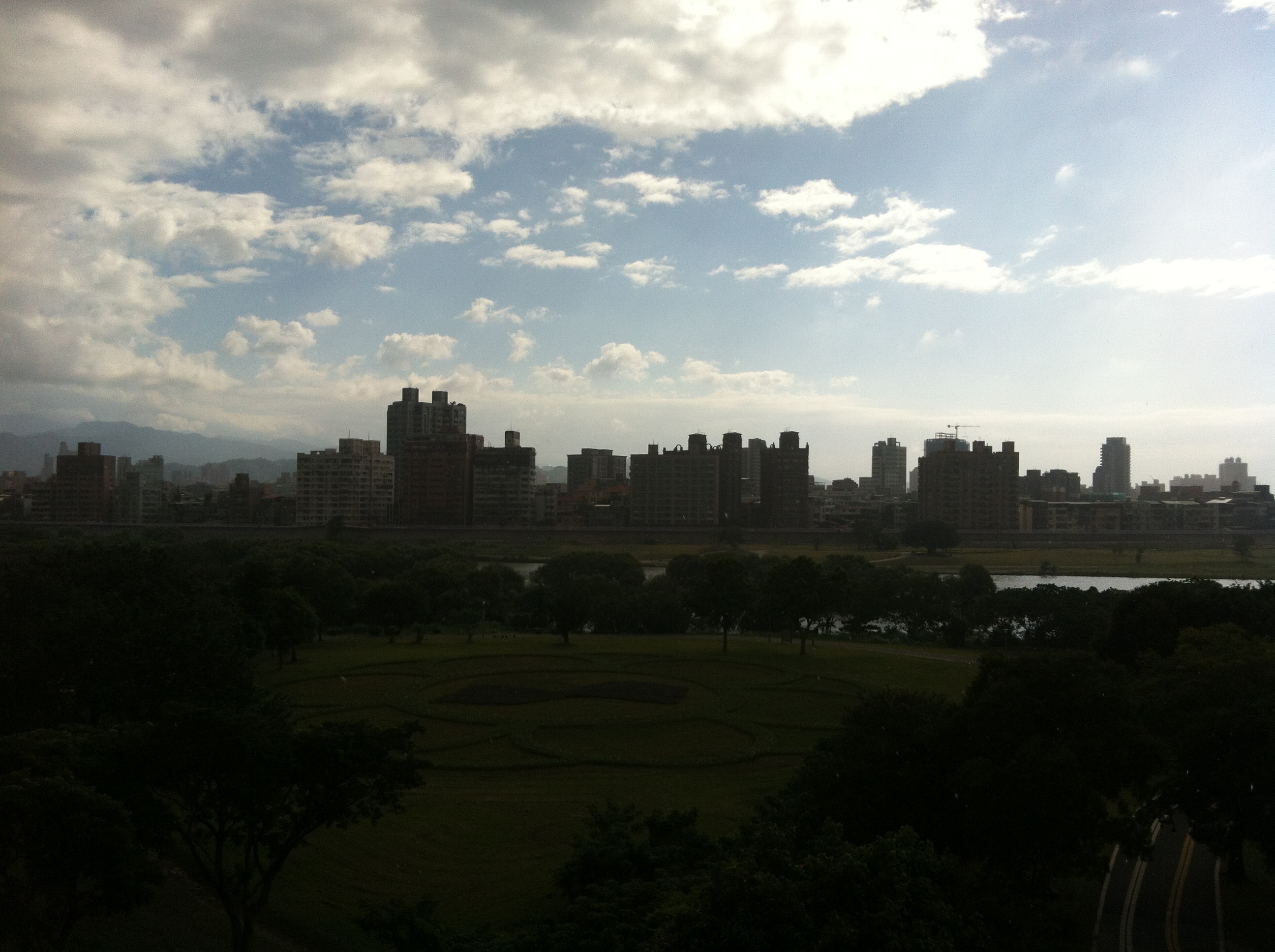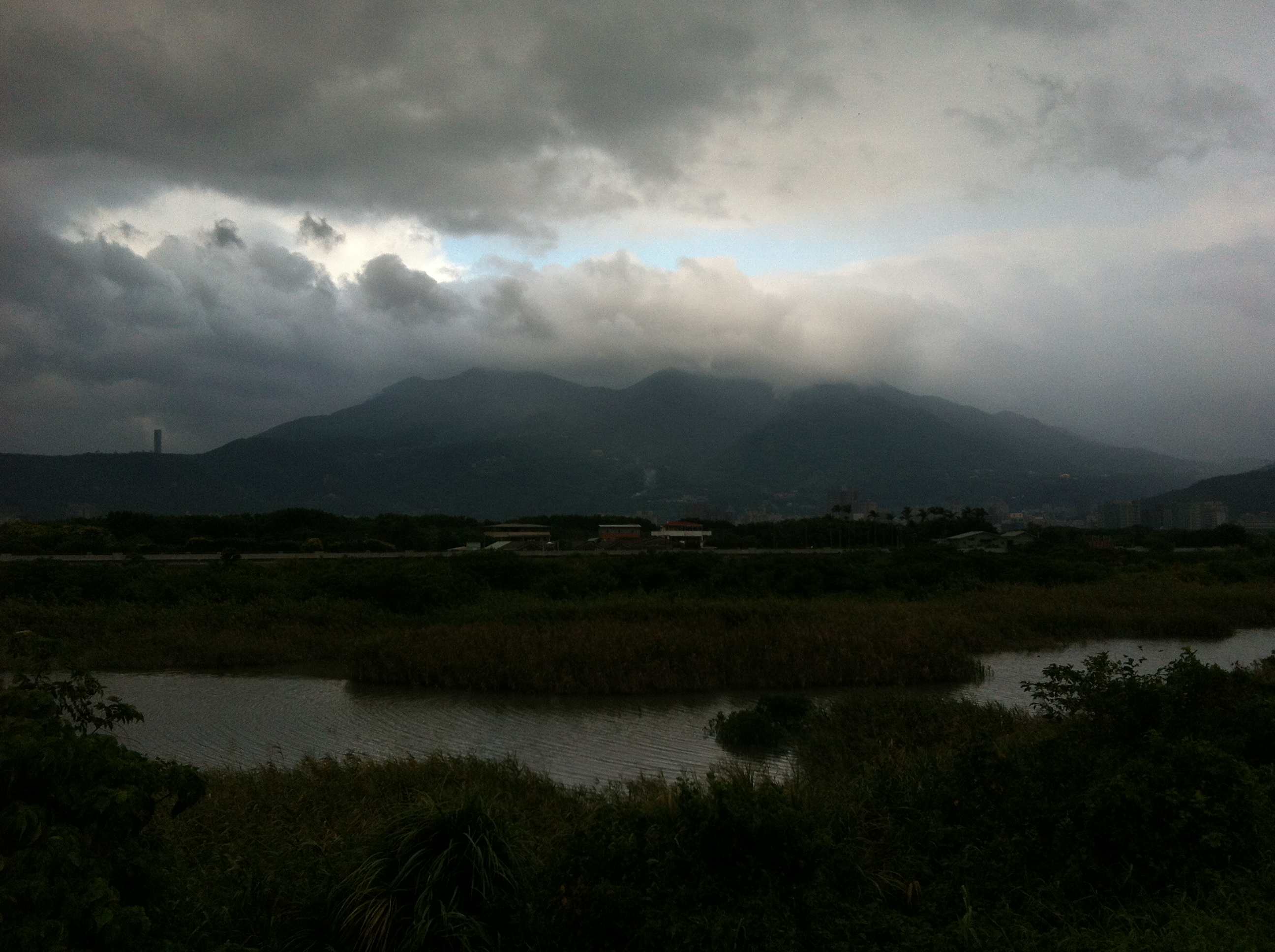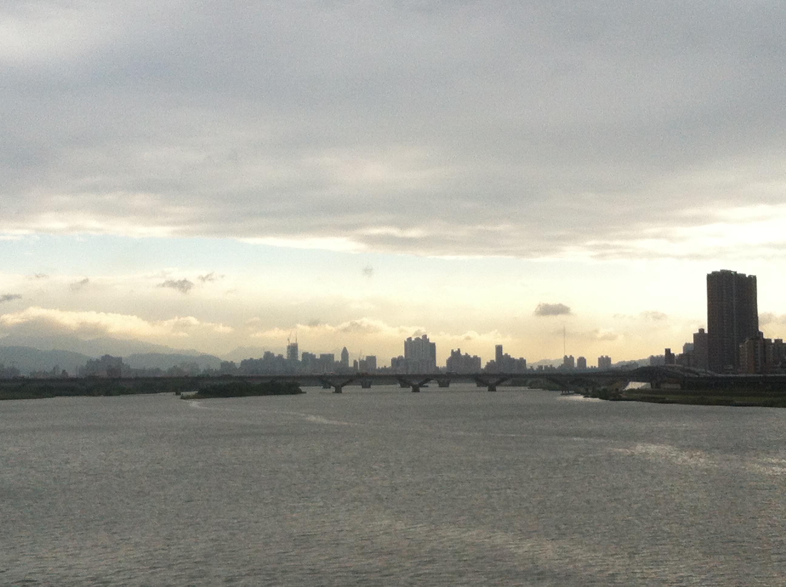 Freitag haben wir eine fast 50 km lange Radtour gemacht. Dabei sind wir am Danshui River und Keelung River entlang gefahren. Die rote Linie markiert unsere 5 stündige Reise. Dabei entwickelte sich das Wetter von hervorragend über bescheidend bis zu beschissen…Wir sind einfach verwöhnt von täglichen 28°C und Sonnenschein;)