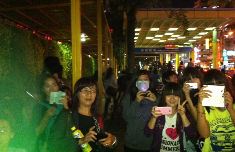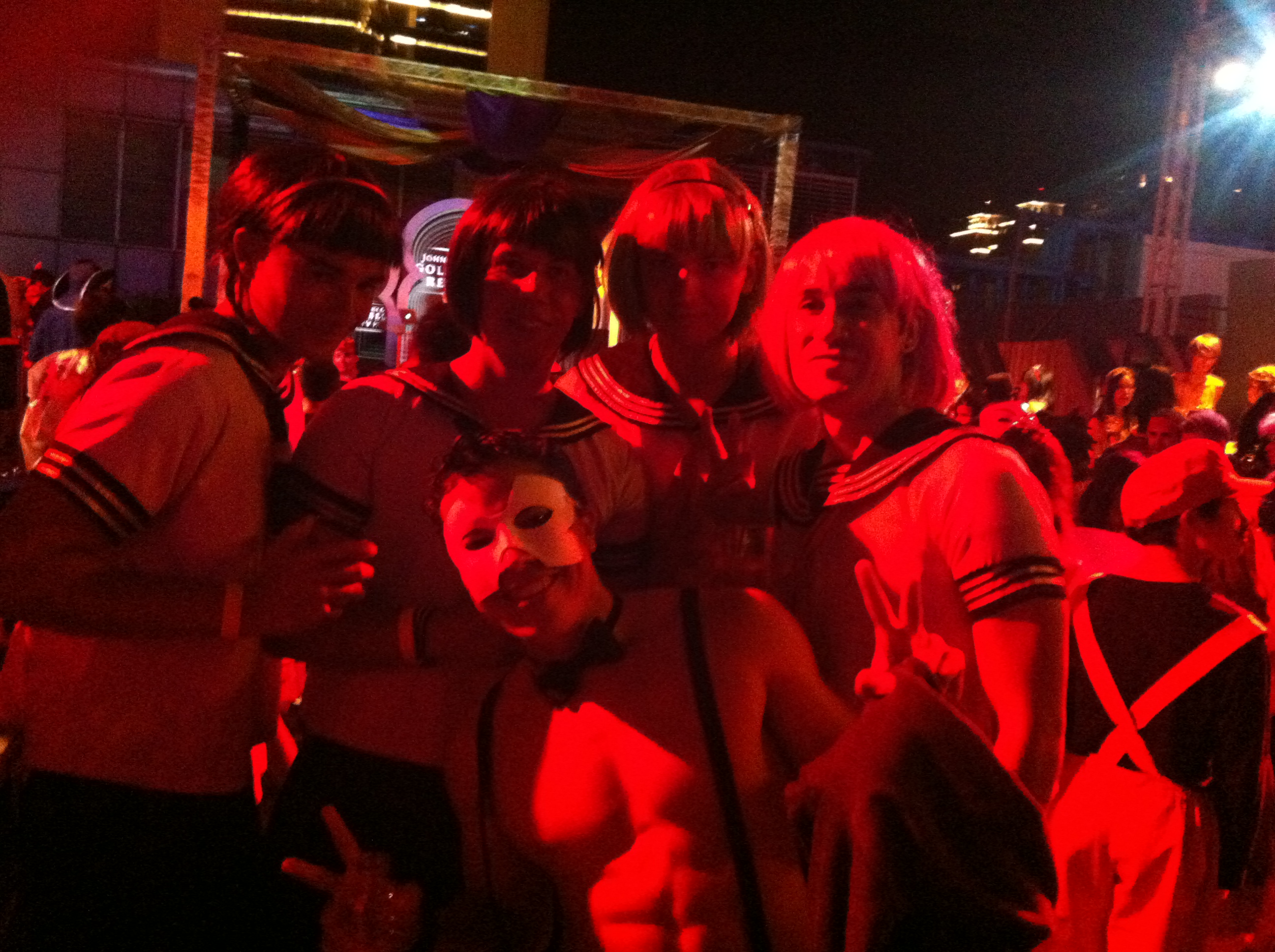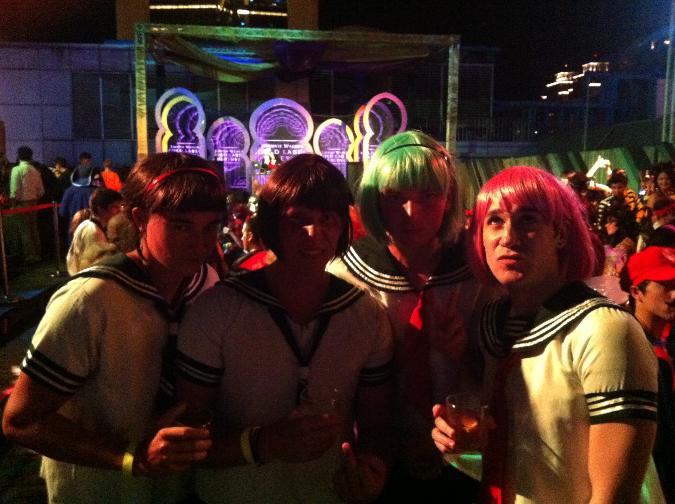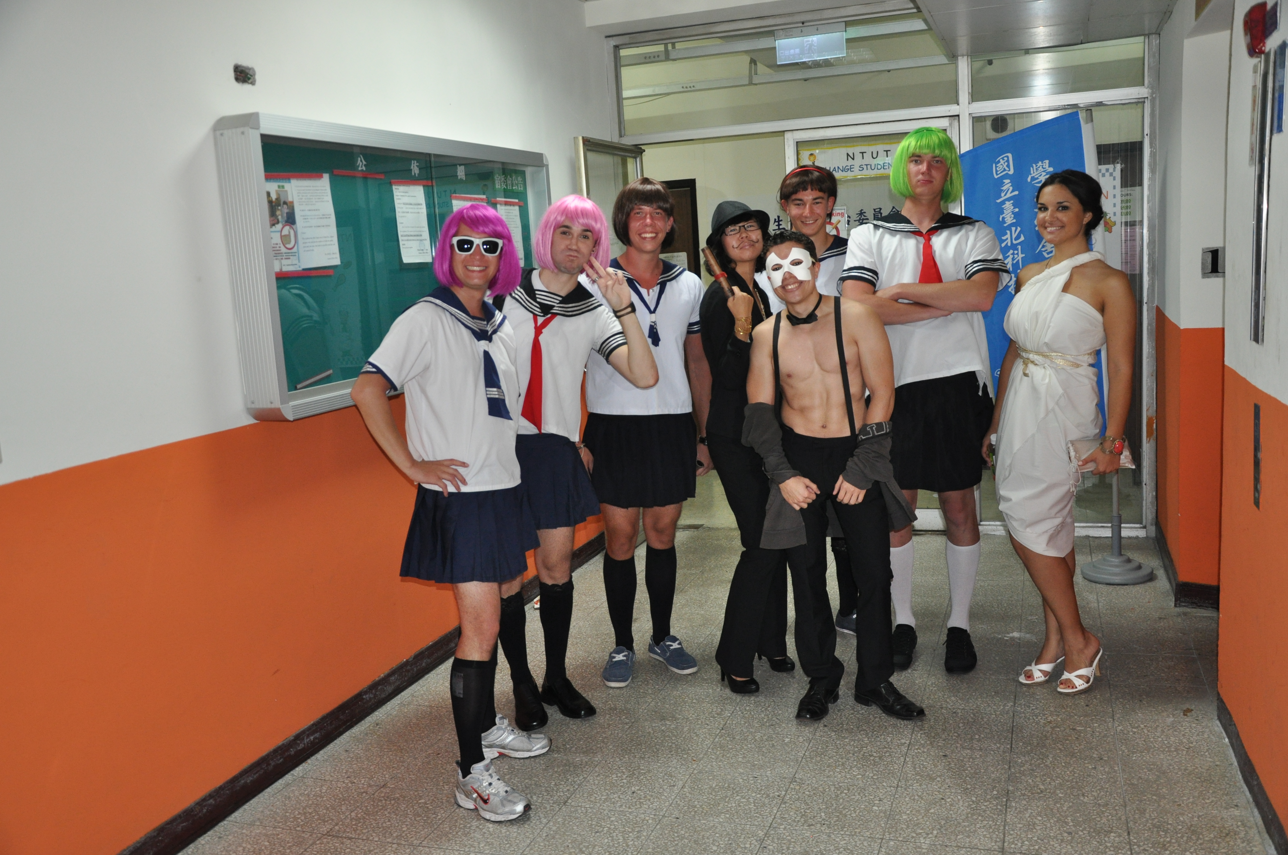 Samstag Abend (27.10.12) gingen wir in den Club Room 18 zur Halloween Roof-Party. Eintritt war nur für geladene Gäste und somit durften wir auch nicht fehlen. Die Party war auf dem Dach des Gebäudes, ca. 100 m entfernt vom Taipei 101. Als ob das nicht schon genug war, gab es neben dem freien Eintritt auch noch all you can drink, open Bar, also Alkohol soviel man wollte und konnte…:) Wir haben uns zu 6. (alles Kerle) als taiwanesiche Schulmädchen verkleidet. So wie geplant, kam unsere taiwahnsinnige Kostümauswahl gut an. Man hatte keine Minute für sich, da kamen die nächsten und wollten unbedingt Fotos machen. In der Metrostation vor dem Club standen dann ca. 30 Leute um uns und hörten gar nicht mehr auf zu fotografieren. Die Taiwanesen sind halt einfach verrückt…