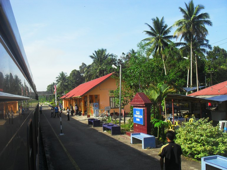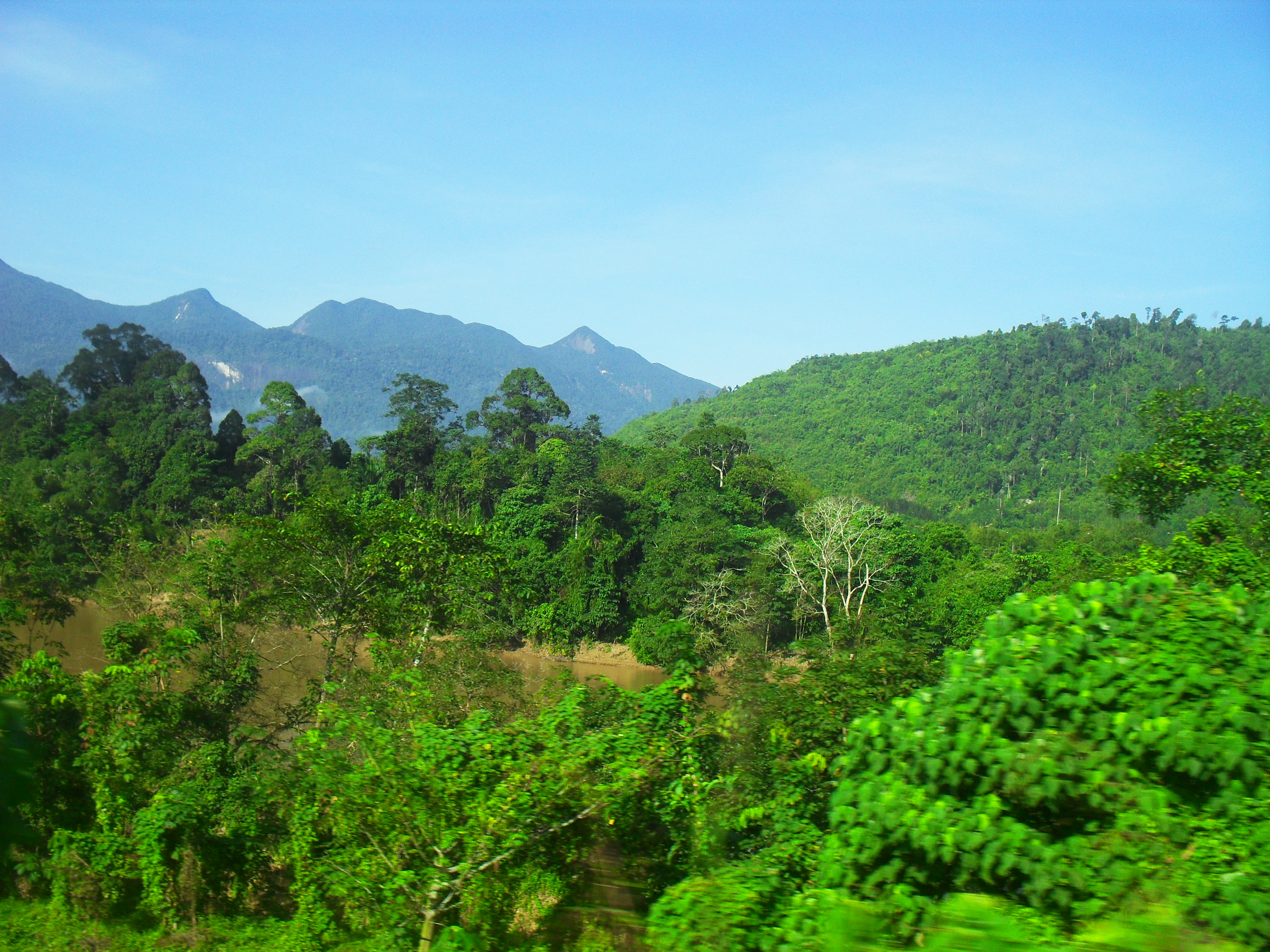 Heute frueh um 6 ging es zunaechst mit einer 20-minuetigen Taxifahrt (25 RM) von Kota Bharu zum Bahnhof nach Wakaf Bharu. Dort haben wir dann den Dschungelzug um 7.15 Uhr (25 RM) genommen. Auf einer 6,5 stuendigen Fahrt sind wir dabei quer durch den Regenwald gefahren. Wir haetten auch leichter nach Taman Negara kommen koennen aber wir wollten unbedingt den Zug nehmen, da ihn uns viele empfohlen haben. Es war wirklich beeindruckend, man kann es nicht in Worte beschriben. Es war lustig zu sehen wie die Einheimischen mit ihren Waren in den Zuegen einstiegen. Die Landschaft war einfach unbeschreiblich. Erschreckend war es, die Abrodung des Regenwaldes zu sehen, was uns nachdenklich stimmte. Alles in Allem ist die Zugfahrt einfach nur zu empfehlen. In Jerantut angekommen wollten wir eigentlich die NKS Busse fuer 25 RM pro Person ueber Kuala Tembling nach Kuala Tahan nehmen. Da wir aber 4 Stunden haetten warten muessen, haben wir uns fuer ein Taxi (65 RM) entschieden. In Kuala Tahan haben wir keinen Platz mehr in einem Schlafsaal gefunden und sind letztlich in das Yellow Guesthouse, was ziemlich neu und wahrscheinlich eines der wenigen Hostel mit Wifi ist, eingezogen.