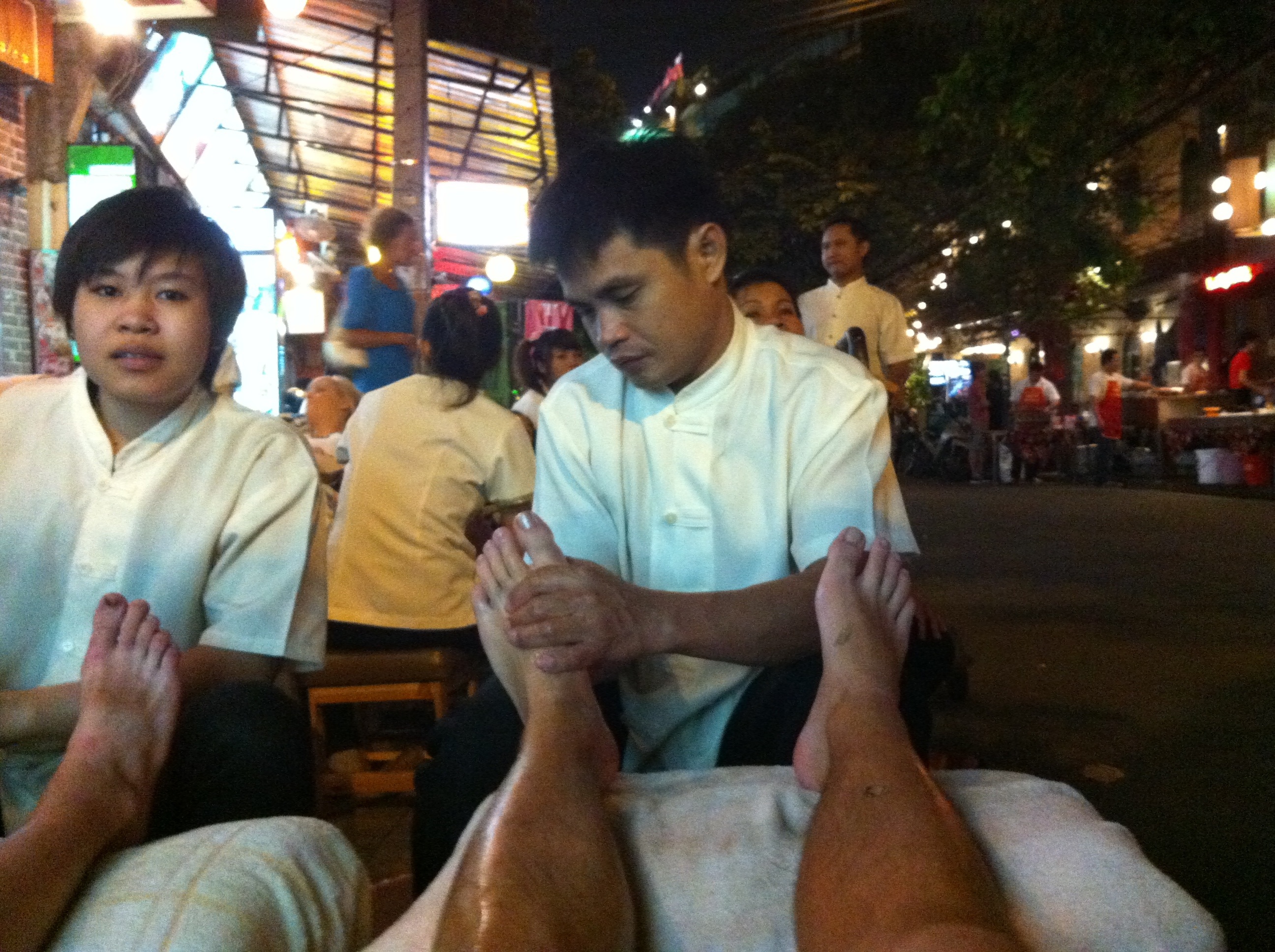 Am heutigen Tag hab ich dann das Visum für Myanmar beantragt, wo es morgen hingeht. Das hat fast den ganzen Tag in Anspruch genommen. Die restliche Zeit habe ich mir am Siam Square und Chinatown vertrieben. Der Siam Square ist wohl ein Muss für alle Shoppingtouristen. Außerdem kann man das Bangkok Kunst und Kultur Zentrum, sowie das Jim Thompsons Haus besichtigen. In Chinatown sollte man Wat Traimit, Wat Thepsirinthrawat, den Talat Mai Markt und die Sampeng Lane sehen. Letzteres ist wie ein Nachtmarkt in einer kilometerlangen, schmalen Gasse, wo es wirklich alles zu kaufen gibt! Auf der Memorial Bridge hat man übrigens eine gute Aussicht auf die Alt- und Neustadt. Auf dem Mae Nam Chao Phraya Fluss kann man leicht mit den Expressbooten umherfahren (eine Fahrt kostet 15 Baht). Wohl das beste Fortbewegungsmittel Bangkoks. Abends gab es dann die erste Fußmassage. Sehr empfehlenswert.