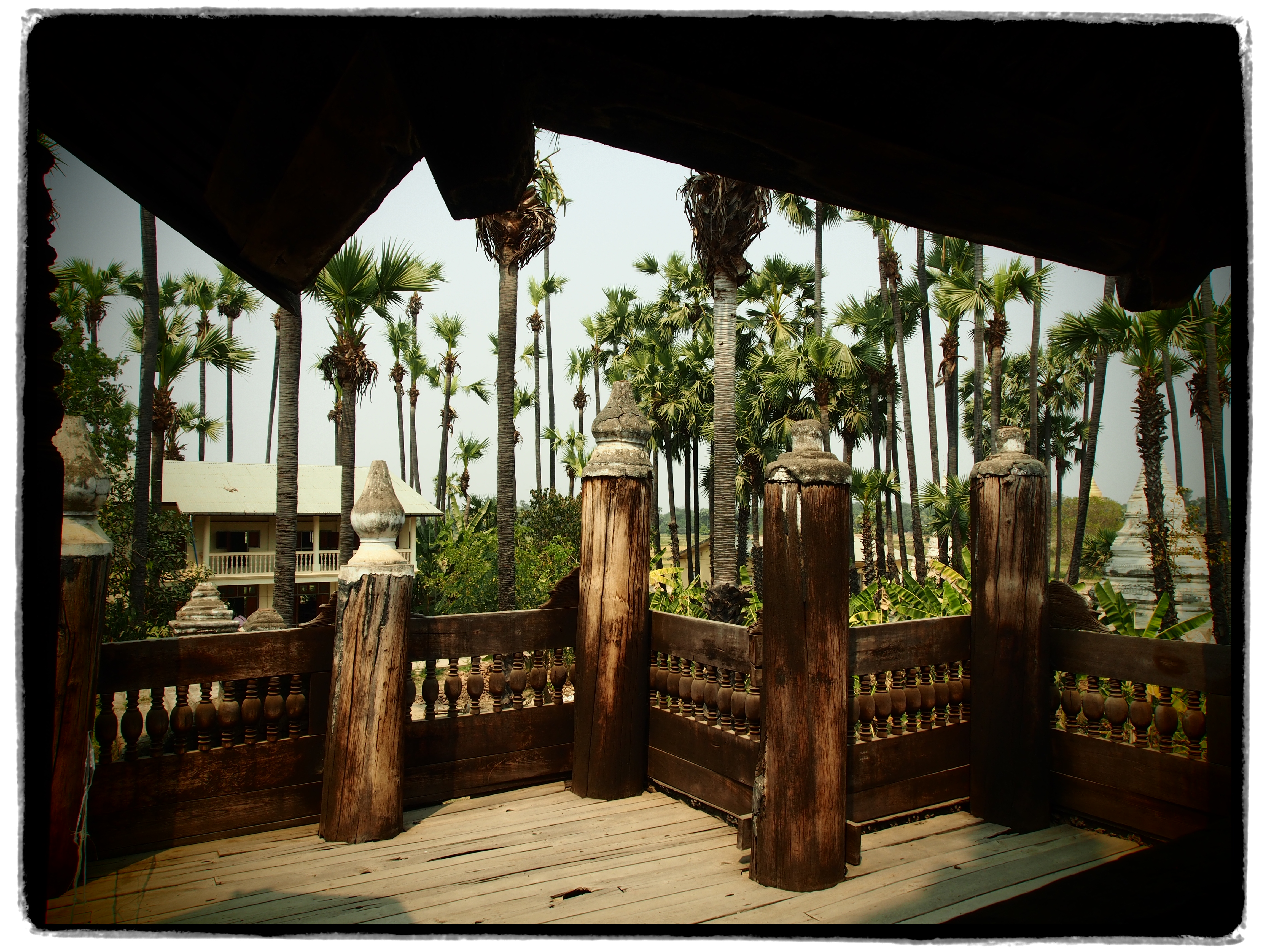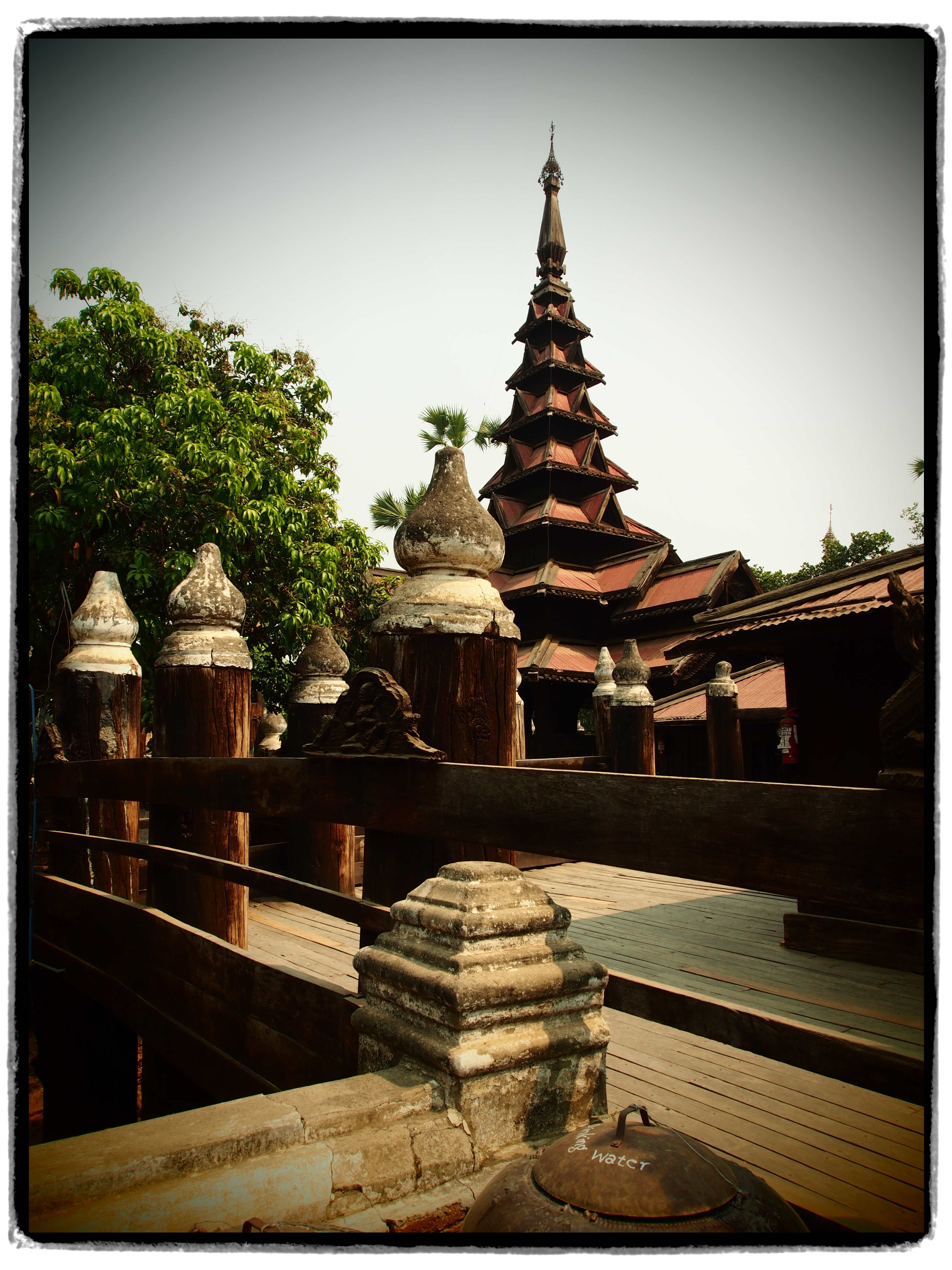 Später sind wir dann zum Dorf Inwa (Ava) gefahren. Dies ist durch Flüsse und Kanäle abgeschnitten. Also muss man die Fähre für 200 Kyatt nehmen. Danach mietet man sich eine Pferdekutsche für 6000 Kyat. Hier sind zwar auch viele Touristen, jedoch verläuft sich das anfängliche Getummel und man sieht das traditionelle und landwirtschaftliche Leben der Einheimischen. Außerdem fährt man zu dem Teakholz-Kloster Bagaya, Nanmyi-Wachturm, Maha Aungmye Bonzan Kloster und zu diversen Pagoden.