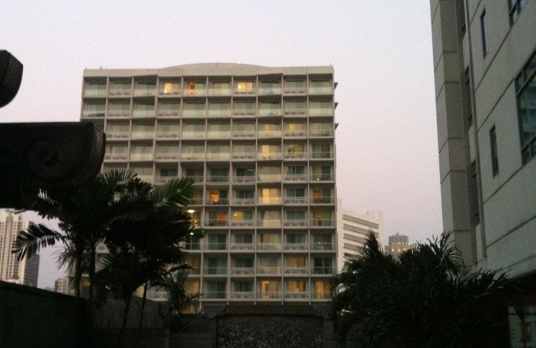 Vorgestern ging es mal wieder für eine Nacht nach Bangkok. Um ein wenig zu entspannen, sollte es diesmal ein gutes Hotel werden. Wie Gott so will, bin ich in einem noch besseren Hotel gelandet. Da das Majestic Suites überbucht war, hat man mich zum gleichen Preis (25 €) in das Majestic Grande geschickt. 5 Sterne und ich steh an der Rezeption mit Rucksack zwischen all den Krawattenträgern. Der Pool und das Fitnessstudio waren ziemlich gut. In Sukhumvit gibt es nicht all zu viel. Es ist bekannt für teure Hotels und Bürogebäude. Weshalb die meisten Deutscheb dort sind, sind die Rotlichtviertel Nana Plaza und Soi Cowboy. Ziemlich lustig, was dort abgeht. Wenn sich Leute unterhalten, kann man fast immer davon ausgehen, dass man ein paar deutsche Worte aufschnappt. Ein paar Straßen weiter findet man ein arabisches Viertel, wo man dann nur noch auf bärtige Männer und arabische Schriftzeichen trifft.