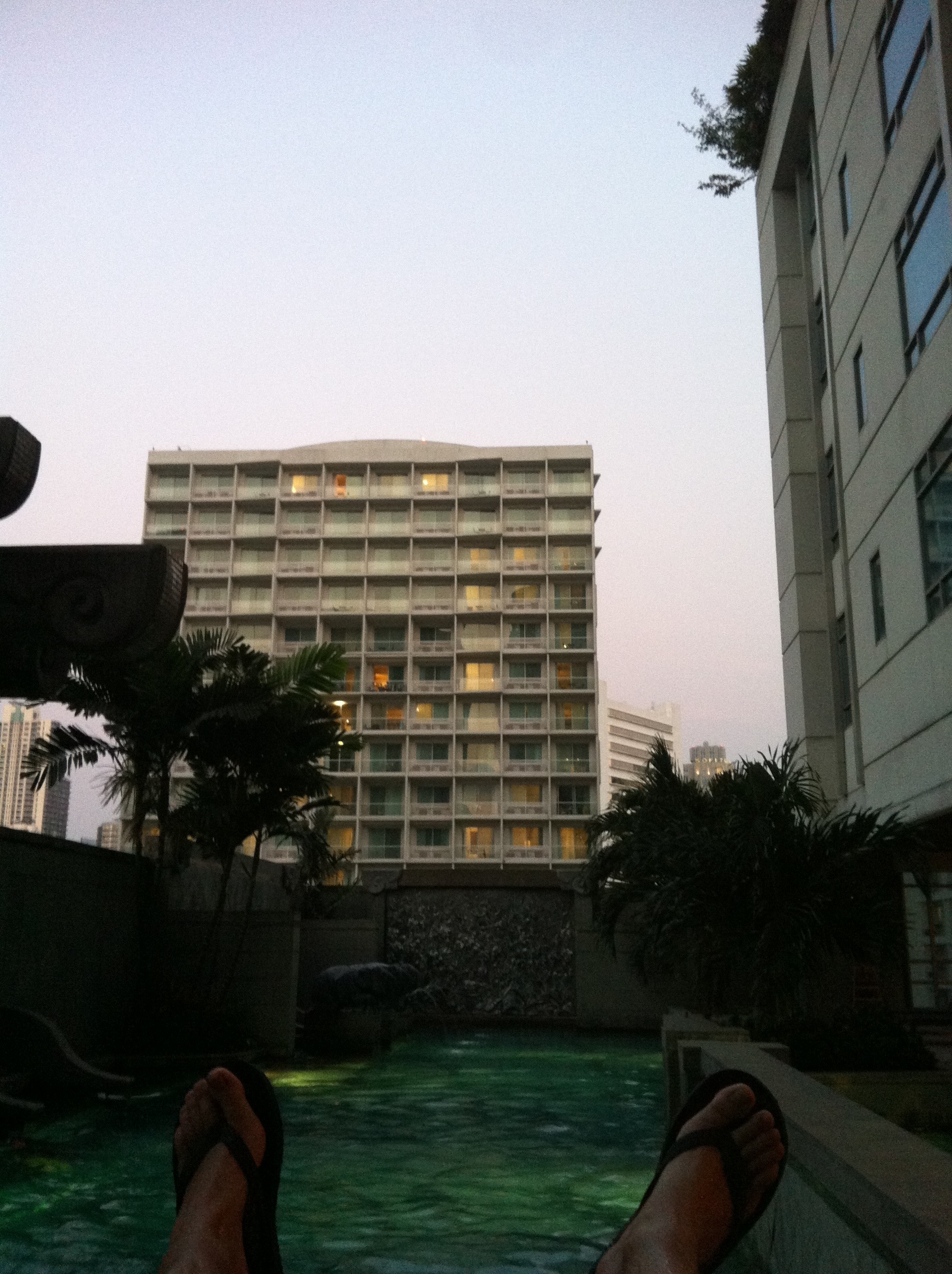 Vorgestern ging es mal wieder für eine Nacht nach Bangkok. Um ein wenig zu entspannen, sollte es diesmal ein gutes Hotel werden. Wie Gott so will, bin ich in einem noch besseren Hotel gelandet. Da das Majestic Suites überbucht war, hat man mich zum gleichen Preis (25 €) in das Majestic Grande geschickt. 5 Sterne und ich steh an der Rezeption mit Rucksack zwischen all den Krawattenträgern. Der Pool und das Fitnessstudio waren ziemlich gut. In Sukhumvit gibt es nicht all zu viel. Es ist bekannt für teure Hotels und Bürogebäude. Weshalb die meisten Deutscheb dort sind, sind die Rotlichtviertel Nana Plaza und Soi Cowboy. Ziemlich lustig, was dort abgeht. Wenn sich Leute unterhalten, kann man fast immer davon ausgehen, dass man ein paar deutsche Worte aufschnappt. Ein paar Straßen weiter findet man ein arabisches Viertel, wo man dann nur noch auf bärtige Männer und arabische Schriftzeichen trifft.