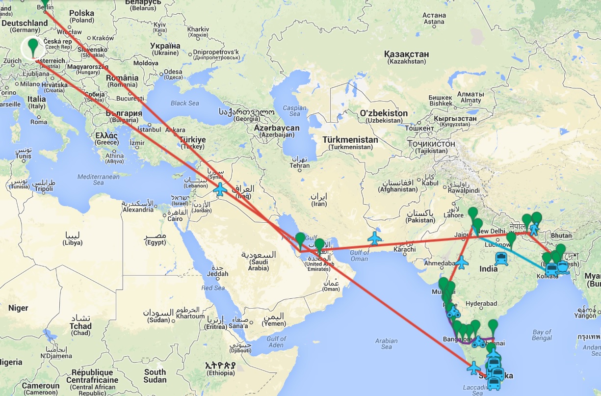 Erster Halt ist Sri Lanka, wo ich 2 Wochen lang mit einer Freundin, die ich noch aus Taiwanzeiten kenne, reisen werde. Danach geht es nach Indien. Der erste Teil unserer Reise wird mit 3 verrückten Deutschen von Chennai nach Mumbai stattfinden. Für was ist Indien bekannt? Genau, für ihre Motorrickshaws. Deshalb werden wir versuchen diese Strecke mir 2 Rickshaws zu bereisen. Letztlich geht es alleine von Delhi bis nach Kalkutta. Danach geht es für kurze Zeit nach Bangladesch. Zum Schluss sagt der Reiseplan, dass ich zum Basecamp vom Mt. Everest wandern werde. Auf dem Rückweg gibt es noch einen kurzen Abstecher nach Katar.