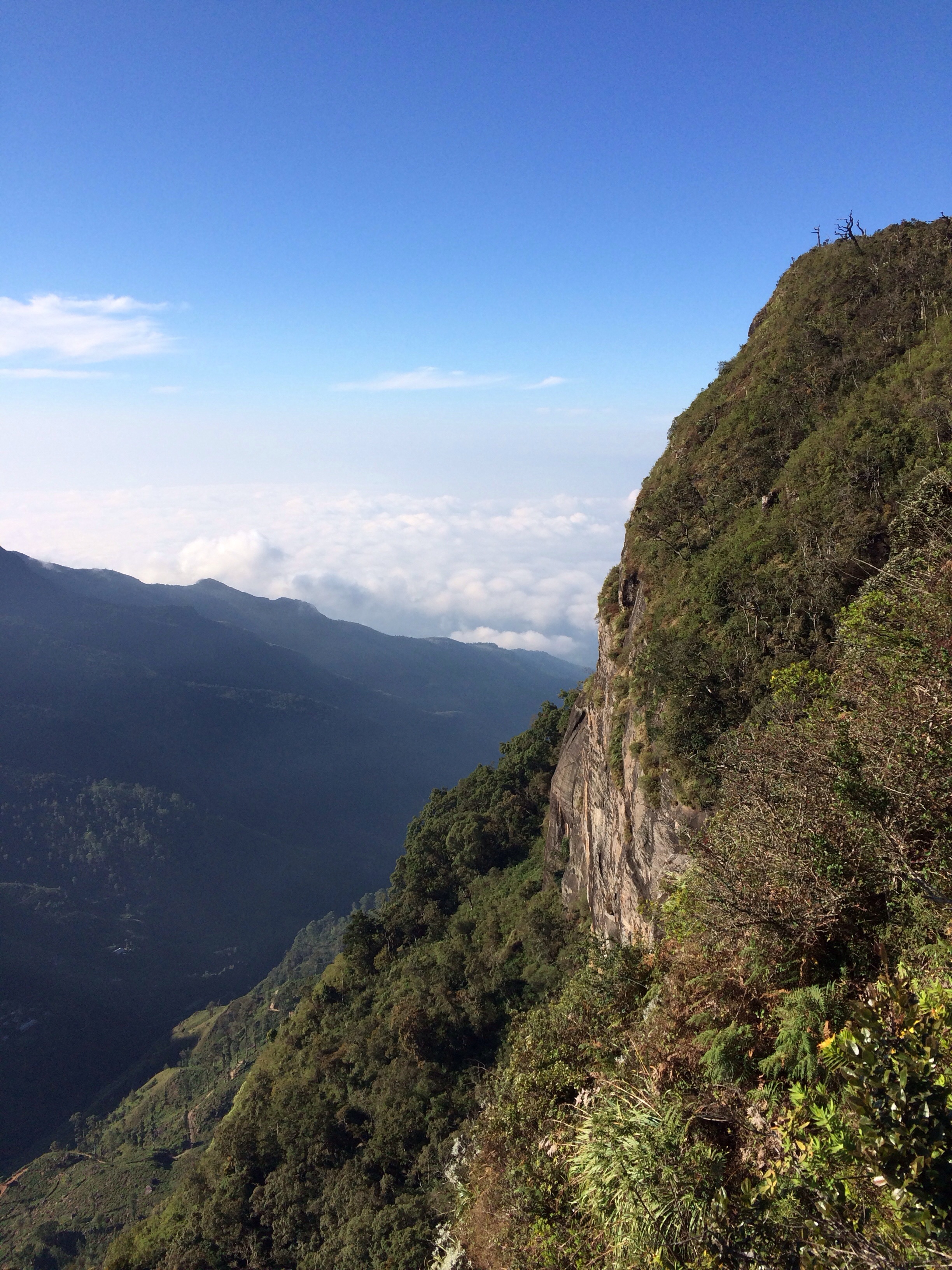 Vor dem Sonnenaufgang sind wir heute zum Nationalpark Horton Plains gefahren. Für den 9,5 km langen Bakers Trail am Worlds End vorbei, braucht man ca. 3 h. Das Worlds End ist eine Klippe, das abrupt um 800 m abfällt. Die Gegend ist zwar sehenswert, aber nochmal würden wir es nicht machen. Für Privatbus und Eintritt zahlt man rund 30 €. Das ist teuer! Es macht auch langsam keinen Spaß mehr immer das 50-fache vom Eintritt der Einheimischen zu bezahlen. Highlights heute waren: meine erste eigene Rickshawfahrt und viele bekannte Gesichter vom Adams Peak wiedersehen.