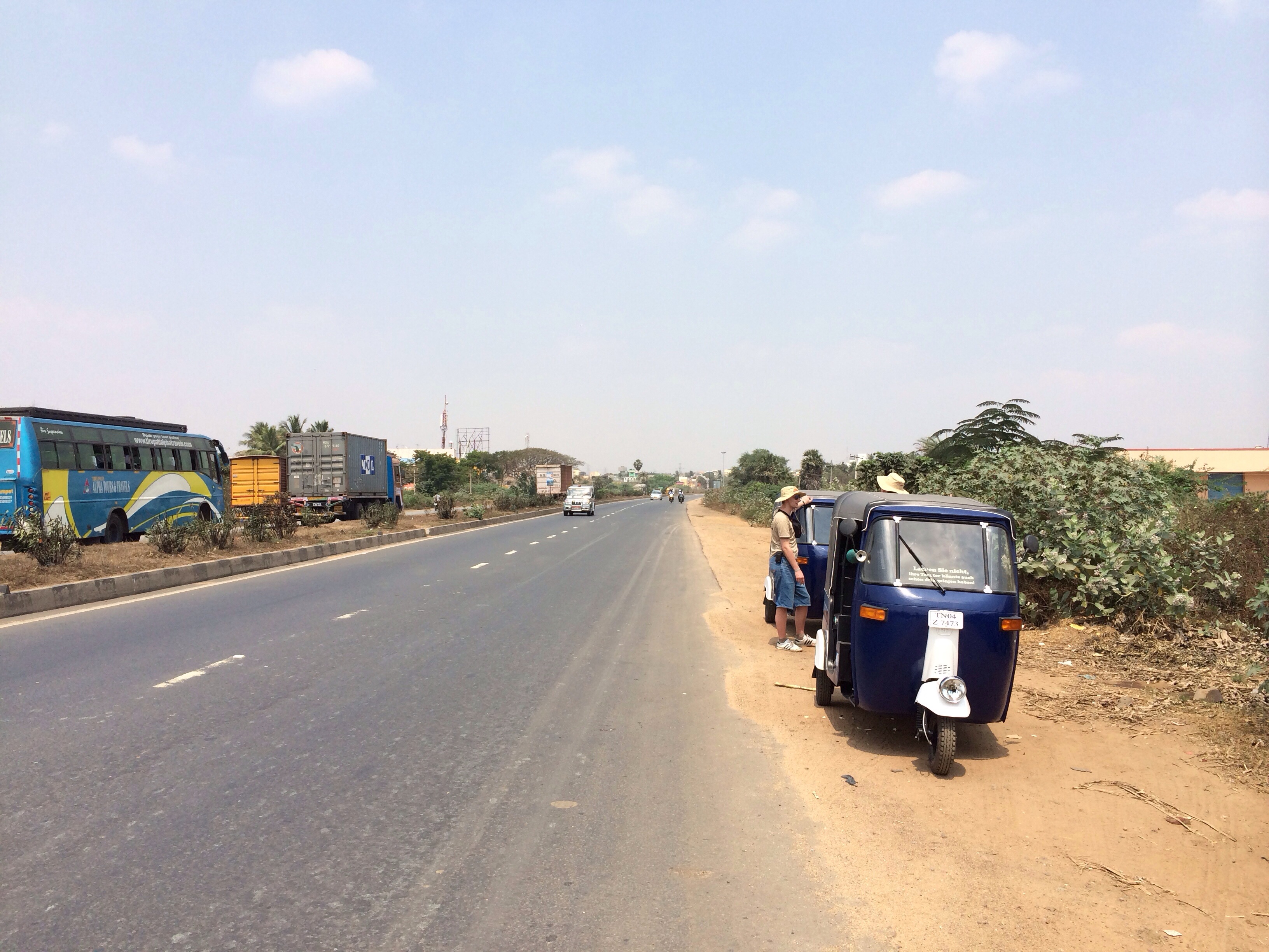 Gestern ging dir erste Etappe los, 140 km von Chennai nach Vellore. Aufgrund von Ueberkonsum des „Kingfisher-Getraenks“ hatten wir einen leicht verspaeteten Start. Der anstrengendste Teil war aus Chennai rauszukommen. Der 2-spurige Highway, teils sogar 3-spurig, war nicht ueberfuellt und wir konnten mit 40 – 50 km/h über die Straßen düsen. Und alles ohne Zwischenfall. Für die Strecke haben wir 5 h gebraucht, wie geplant 😉