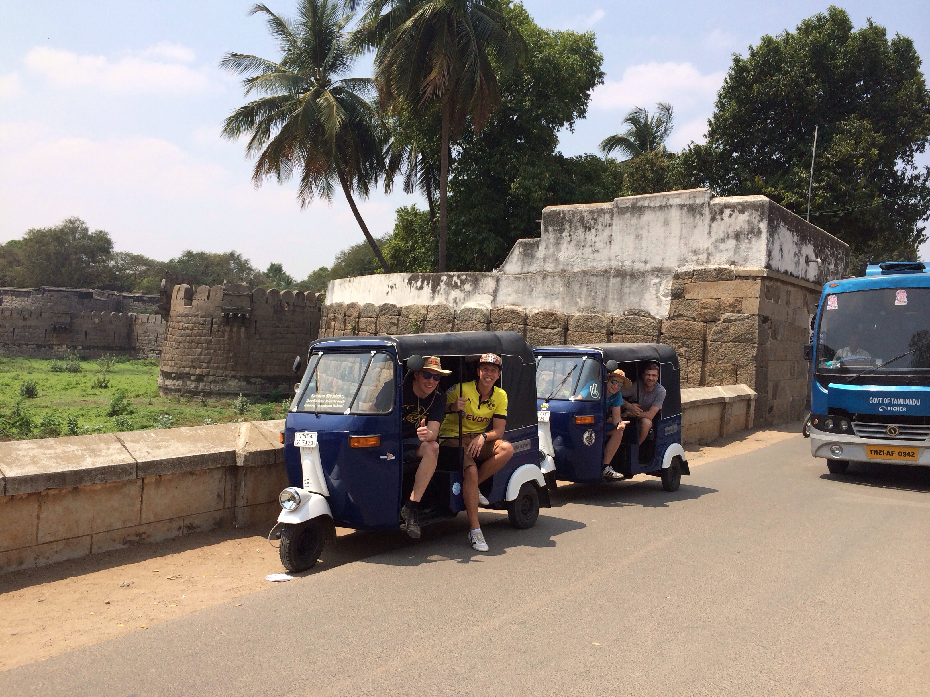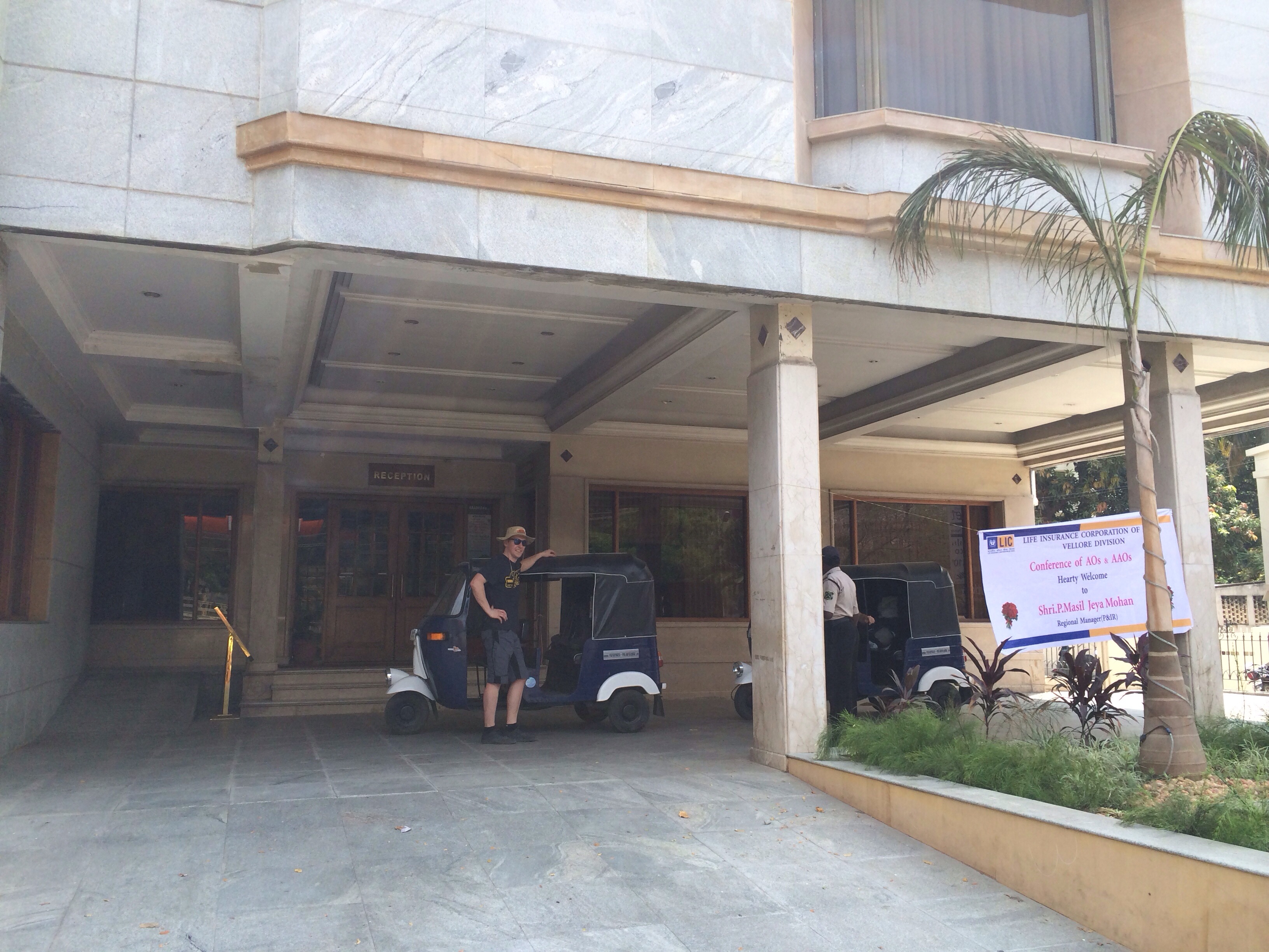 Richtig aufregend wurde es in Vellore. Erst einmal war es ein Krampf durch die engen Strassen zu fahren. Im Hotel Solai angekommen, was waermstens von Lonely Planet empfohlen war, verlangten die Hotelmanager eine Erlaubnis der Polizei. Also ging es auf zu dem Polizeibüro. Bevor wir über die Erlaubnis reden konnten, wurden erstmal mehr als ausführlich unsere Fahrzeugpapiere geprüft. Einer von uns hatte 3 Fragezeichen in den Augen, der nächste war wütend, ein anderer immer noch vom Vorabend geschädigt und der letzte reagierte gleichgültig.