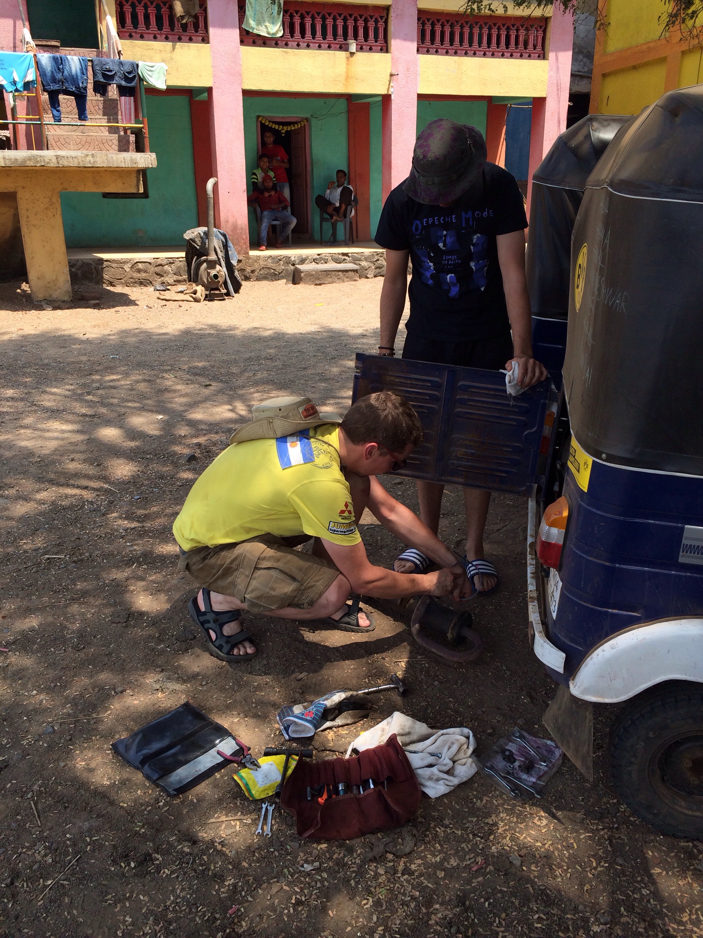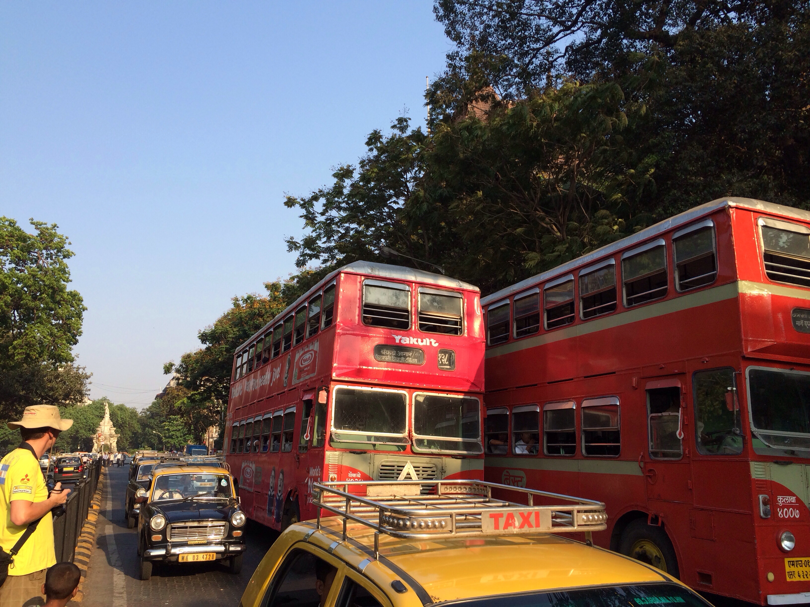 Heute standen die letzten 120 km nach Mumbai an. Die 5-stuendige Fahrt war eigentlich nichts besonderes, abgesehen davon, dass wir jeden Meter mit unseren treuen Rickshaws genossen haben. Die 2200 km hinterliessen sichtlich Spuren bei unseren Fahrzeugen. Ziemlich verdreckt, mehr Kabelbinder als Schrauben und ein paar lose Teile schmuecken nun unsere Rickshaws. Unser fast taegliches Problem, ein loser Auspuff, trat auch heute auf. Diesmal loeste sich der Auspuff jedoch vollstaendig vom Kruemer, was sich durch lautes Knattern bemerkbar machte.