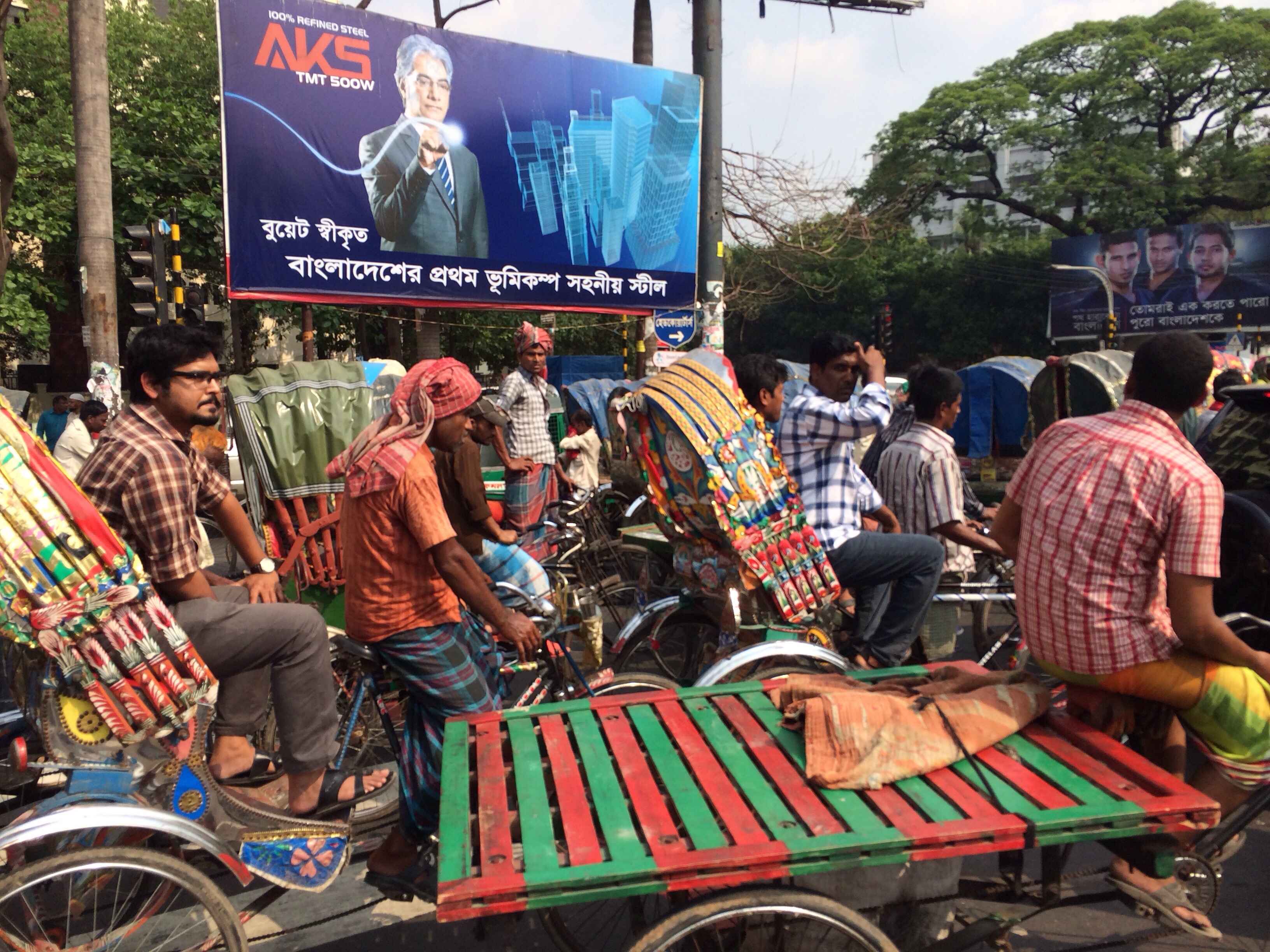 Die Hauptstadt Bangladeschs gehoert zu den Top Ten der groessten Staedte der Welt. Im Gegensatz zu den anderen Staedten verzeichnet sie aber immer noch einen starken Bevoelkerungszuwachs. Und genau so fuehlt es sich hier an. Die Stadt scheint unendlich gross zu sein. Die meisten wissen, dass der Verkehr in Vietnam oder Indien ziemlich verrueckt ist. Ganz ehrlich, das ist harmlos im Gegensatz dazu, was man hier zu Gesicht bekommt. Der Verkehr ist aber wahrscheinlich auch das groesste Problem hier. Er laehmt den Handel und die Vitalitaet der Menschen. Oftmals lohnt es sich nicht eine Rickshaw zu nehmen, da man die zwei km schneller zu Fuß unterwegs sind. Dies gilt vor allem fuer Alt-Dhaka.