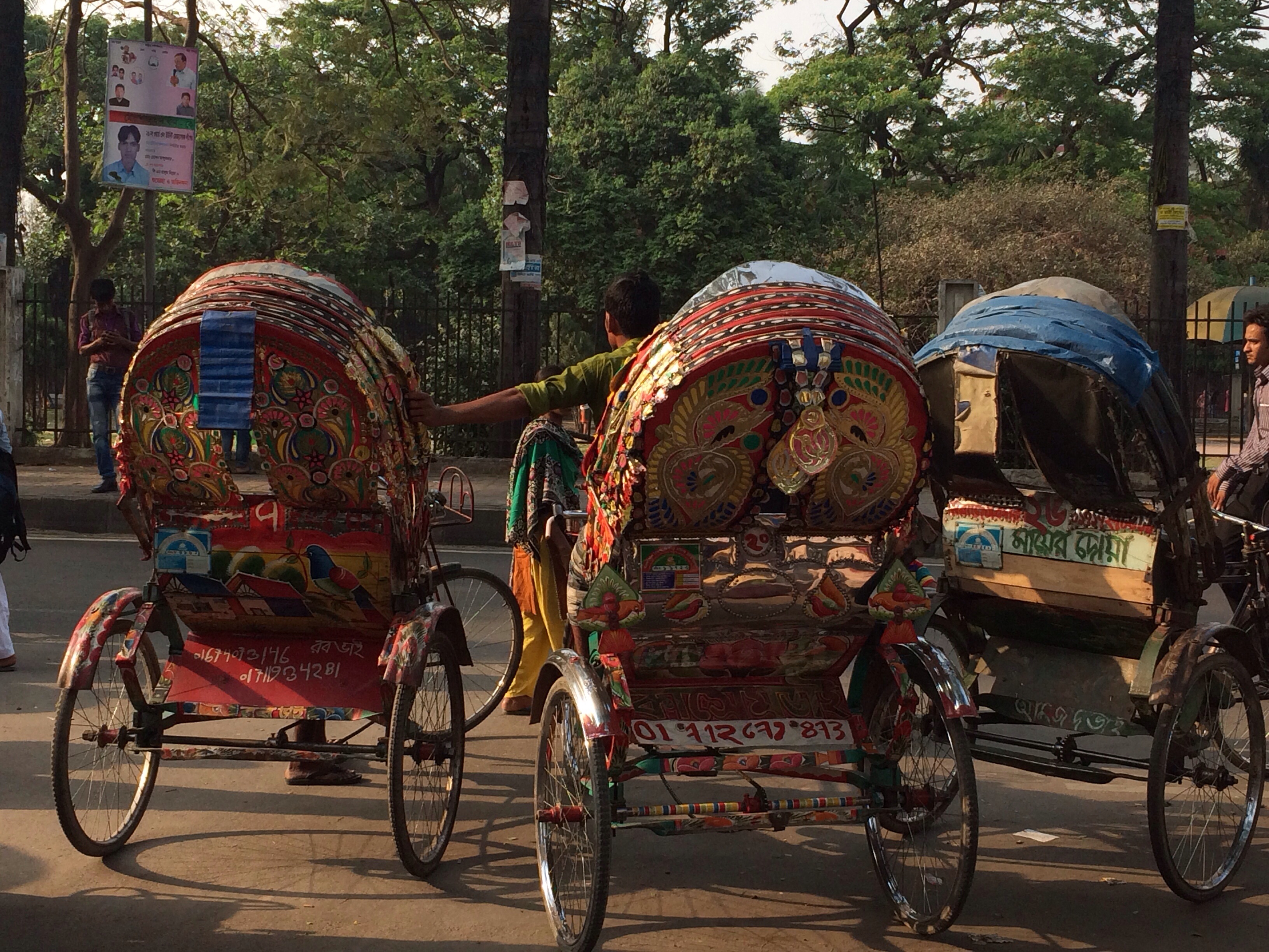 Rickshaws zu nutzen kann nervig sein. Mal fahren die Fahrradrickshaws nicht weit genug, da die Strassen zu stark befahren sind und die Autorickshaws sind oft masslos ueberteuert. Die Verhandlungen scheitern oft an der Sprache. Mein neuer Freund Abdul Rahim ist der einzige Fahrradrickshawfahrer, der englisch sprechen kann. Er kennt sich super aus, faehrt ueberall hin und ist ein Persoenlichkeit fuer sich. Seine Preise liegen zwar ueber dem Durchschnitt, doch das spart ihr wieder, wenn er die Preise beim Shopping drueckt. Seine Kontaktdaten: 01719090989 oder 01733769889 oder purho_111@yahoo.com