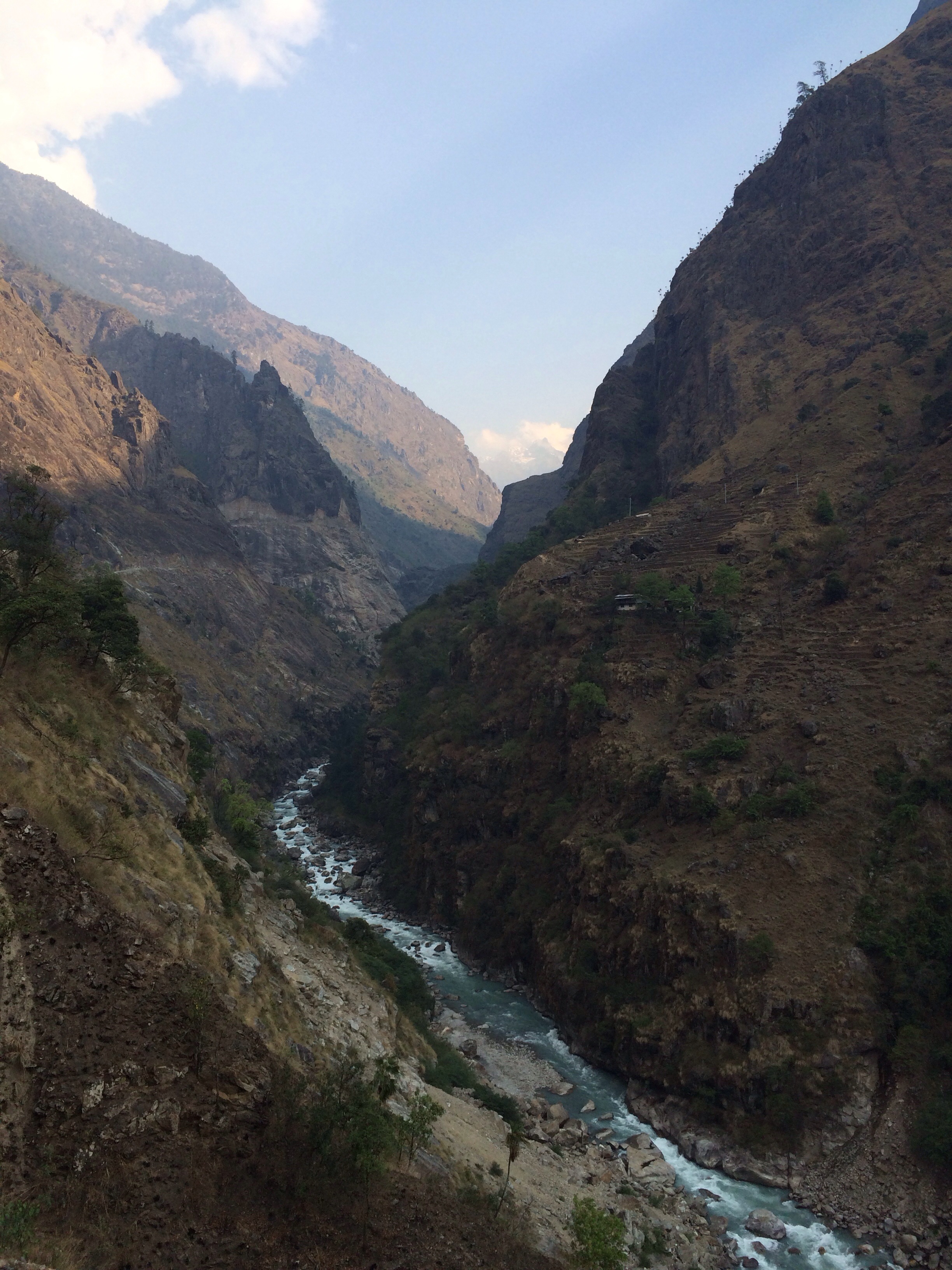 Erste Stopp ist Chamche. Dazu nimmt man einen Minibus in den Morgenstunden von Kathmandu nach Besisahar. Das dauert ca. 5 h. Die Aussicht ist super. Macht euch aber keine Hoffnung im Bus schlafen zu koennen. Danach geht es gute 3 h in einem Jeep weiter. Viele starten auch in Besisahar. Dann dauert die Reise jedoch mindestens ein Tag laenger. Die Fahrt im Jeep ist ein Erlebnis fuer sich. Schmale „Strassen“, 100 m tiefe Schluchten neben sich und Platzmangel. In oder bzw. auf einen Jeep passen bis zu 20 Leute.