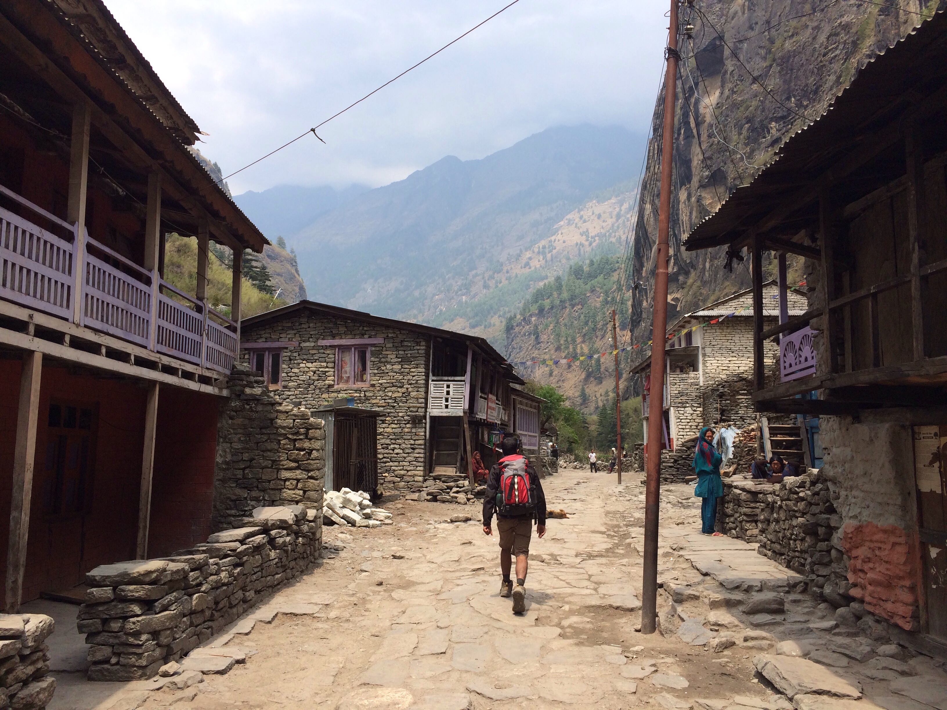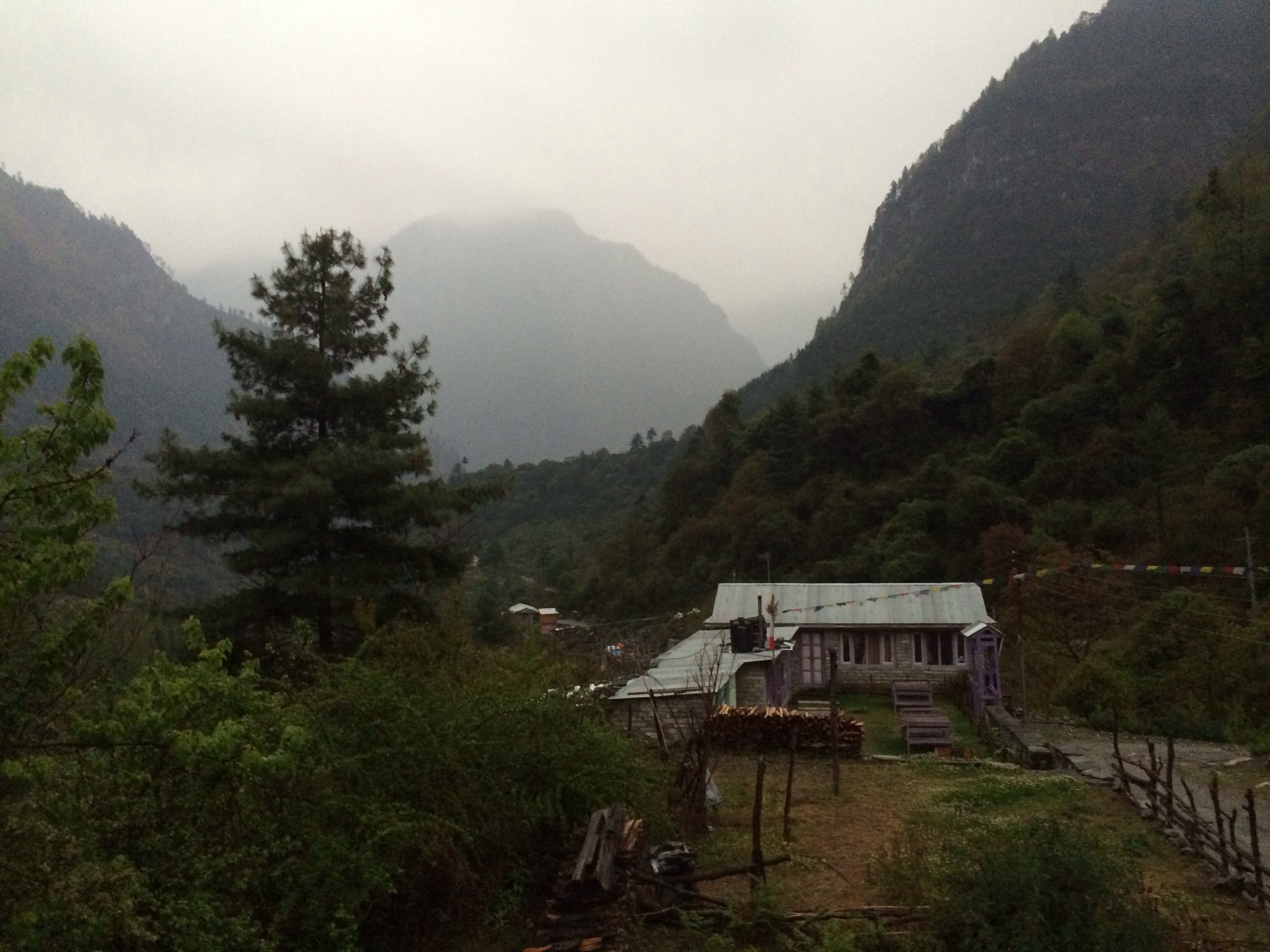 Nach 5,5 h, 800 Hoehenmeter und 15 km Fussweg sind wir in dem kleinen Oertchen Qunche gelandet. Es ist eher unbekannt und liegt 20 min Fussweg von Danaqyu entfernt. Der Wanderweg war als Einstieg optimal. Der Anstieg war nicht zu schwierig und in 2200 m Hoehe laesst es sich noch gut atmen. Bis hier her koennte man sich anscheinend auch mit einem Jeep fahren lassen. Laut Guide soll dies exorbitant teuer sein. Der Weg lohnt sich, denn man blickt die gesamte Zeit ins Tal des Marsyangdi Flusses.