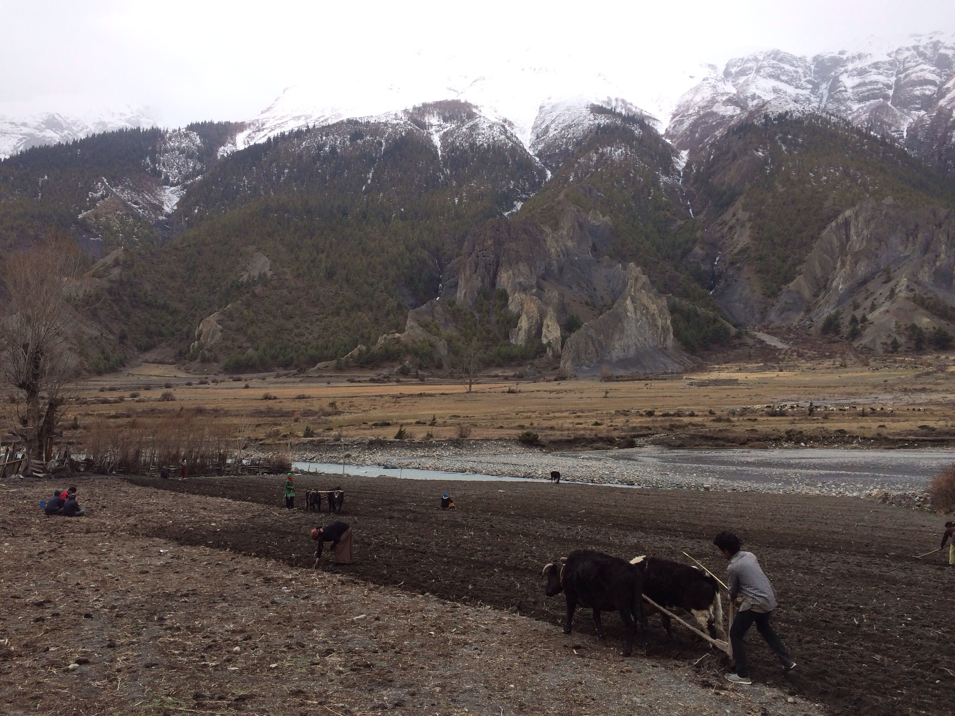 Fuer die 15 km von Lower Pisang nach Manang haben wir gestern 4 h gebraucht. Waehrend der Anstieg von 290 Metern gleich zum Anfang zu verzeichnen war, konnte der restlich Weg entspannt angegangen werden. Man kann sogar sagen, dass der Lower Trail langweilig ist. Hinzu kam noch schlechtes Wetter und Wehwehchen wie Blasen, Wunden etc. Der Upper Trail soll besser sein, dauert aber 3 h laenger. Gesehen haetten wir sowie so nichts.