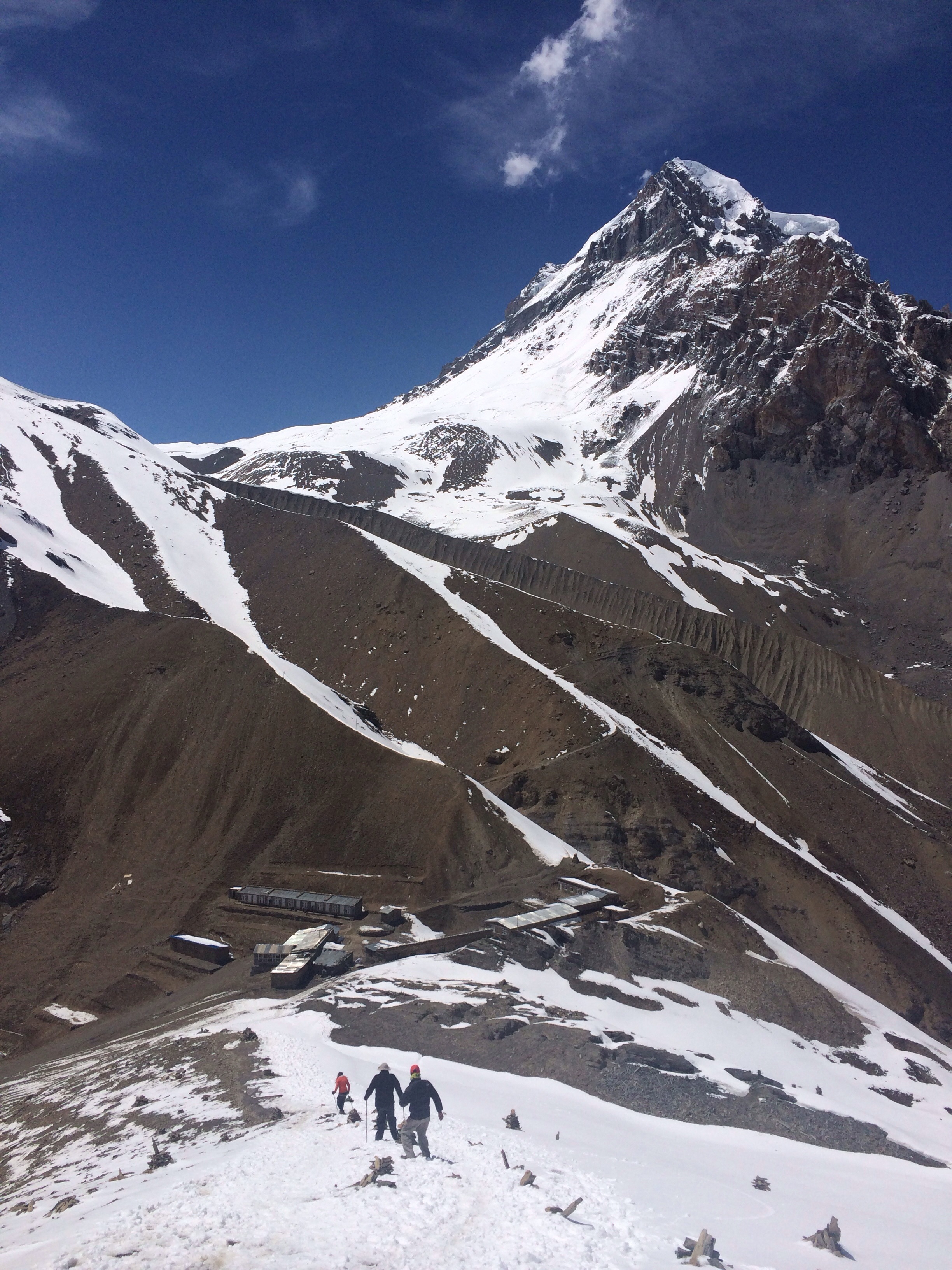 Das High Camp befindet sich auf 4800 m Hoehe. Vorteil, man spart sich bei der morgigen Ueberquerung des Passes eine Stunde. Nachteil, man koennte schnell hoehenkrank werden, weshalb viele in Thorang Phedi uebernachten.