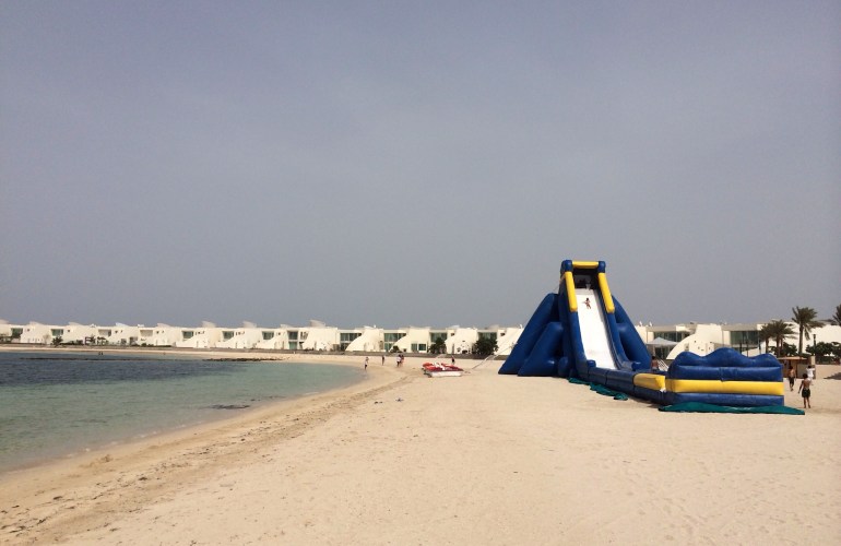 Genau hier hab ich einen Saudi kennengelernt. 10 Minuten nach dem Aufstehen wurde ich prompt eingeladen. Was der Saudi in einer Jugendherberge macht, bleibt mir ein Raetsel. Kurzerhand ging es zu seinem Urlaubsanwesen in Durrat Al-Bahrain. Es ist die groesste aufgeschuettete Insel Bahrains und bietet alles, was man sich vorstellen kann. Ich weiss leider nicht, ob man auch als Besucher auf die Insel kommt. Der restliche Tag lief voellig normal: Essen im 5 Sterne Sheraton Hotel und Meeting im World Trade Center in voellig durchnaesster Badehose mit Flip Flops. Waehrend Freunde der Rickshawtour in 2 Tagen ein 4 Wochen Budget in Indien verbraten haben, hatte ich heute meine guenstigsten Tag auf der Reise. Verruecktes Bahrain!
