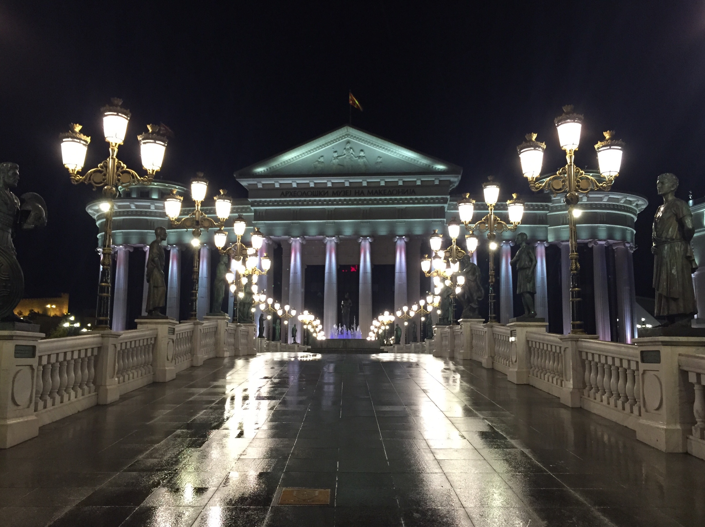 Die Hauptstadt Mazedoniens hat auf dem ersten Blick einige prunkvolle Gebäude zu bieten. Falsch gedacht! Die meisten wurden erst vor kurzer Zeit gebaut und sind Teil des Tourismusprogramms „Skopje 2014“. Im Gegensatz zu manch anderen künstlich erbauten Städten werden hier wenigstens nicht nur Hochhäuser gebaut, sondern Gebäude im neoklassistischen Stil. Ich bin immer noch untentschlossen, ob Skopje zudem reif für solch imposante Gebäude ist, denn im Gegensatz zu den bisherigen Hauptstädten unserer Balkantour wirkt sie urbaner und größer oder ob es lächerlich wie ein Las Vegas wirkt. Es ist definitiv interessant!