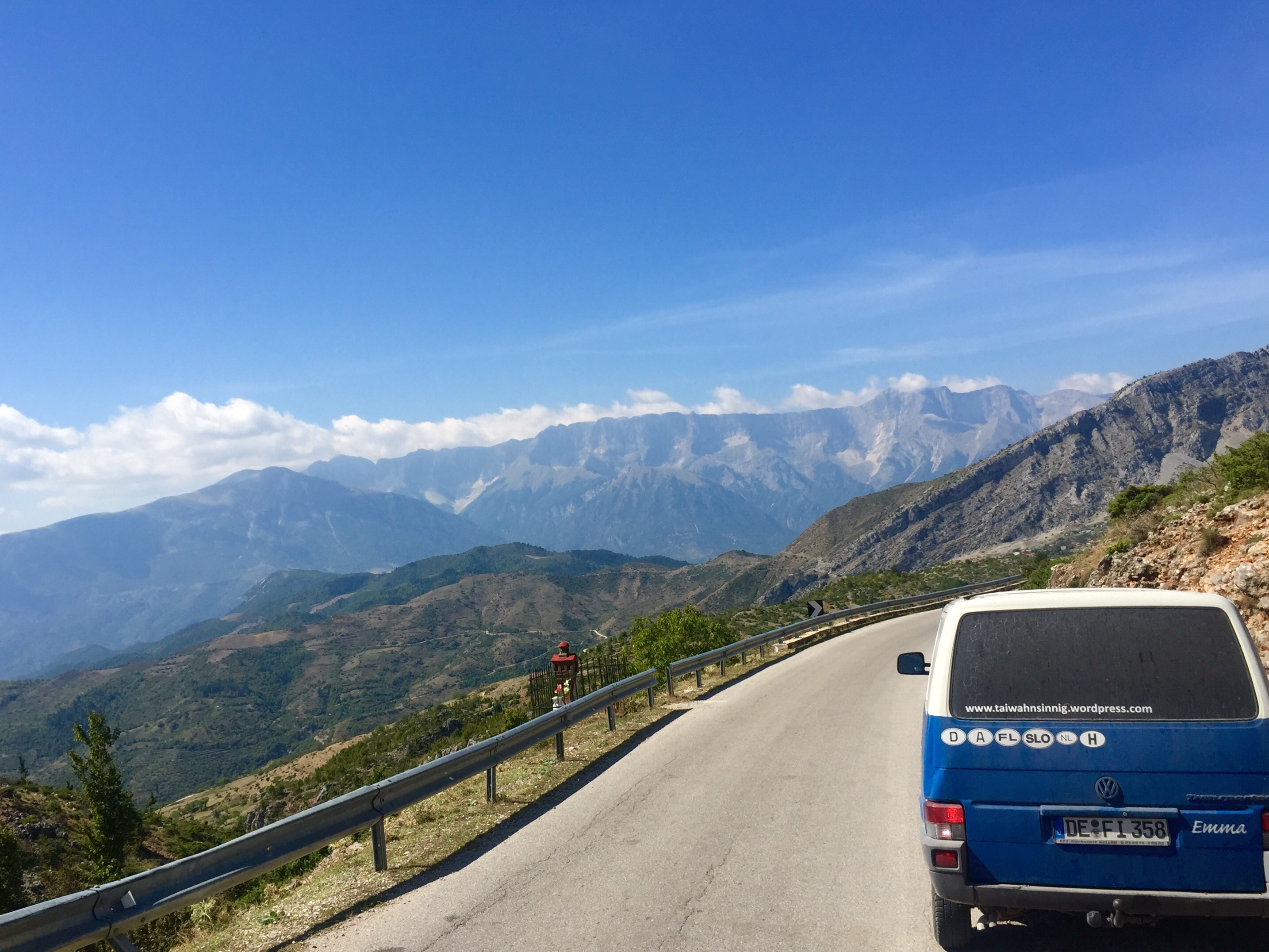 Unsere längste Etappe ist nun geschafft. 7,5 h Fahrt von Ohrid bis zur Quelle! Wir haben nicht die schnellste Route gewählt, dafür wahrscheinlich die Schönste, aber auch anstrengendste Route. Es ging fast nur über Gebirgspässe. Die Straßen waren teils so schlecht, sodass man denken könnte, dass es eine Panzerteststrecke war. Wir sind verwundert, dass Emma auf dem ersten Blick heil geblieben ist. Es war aber ein super Abenteuer.
