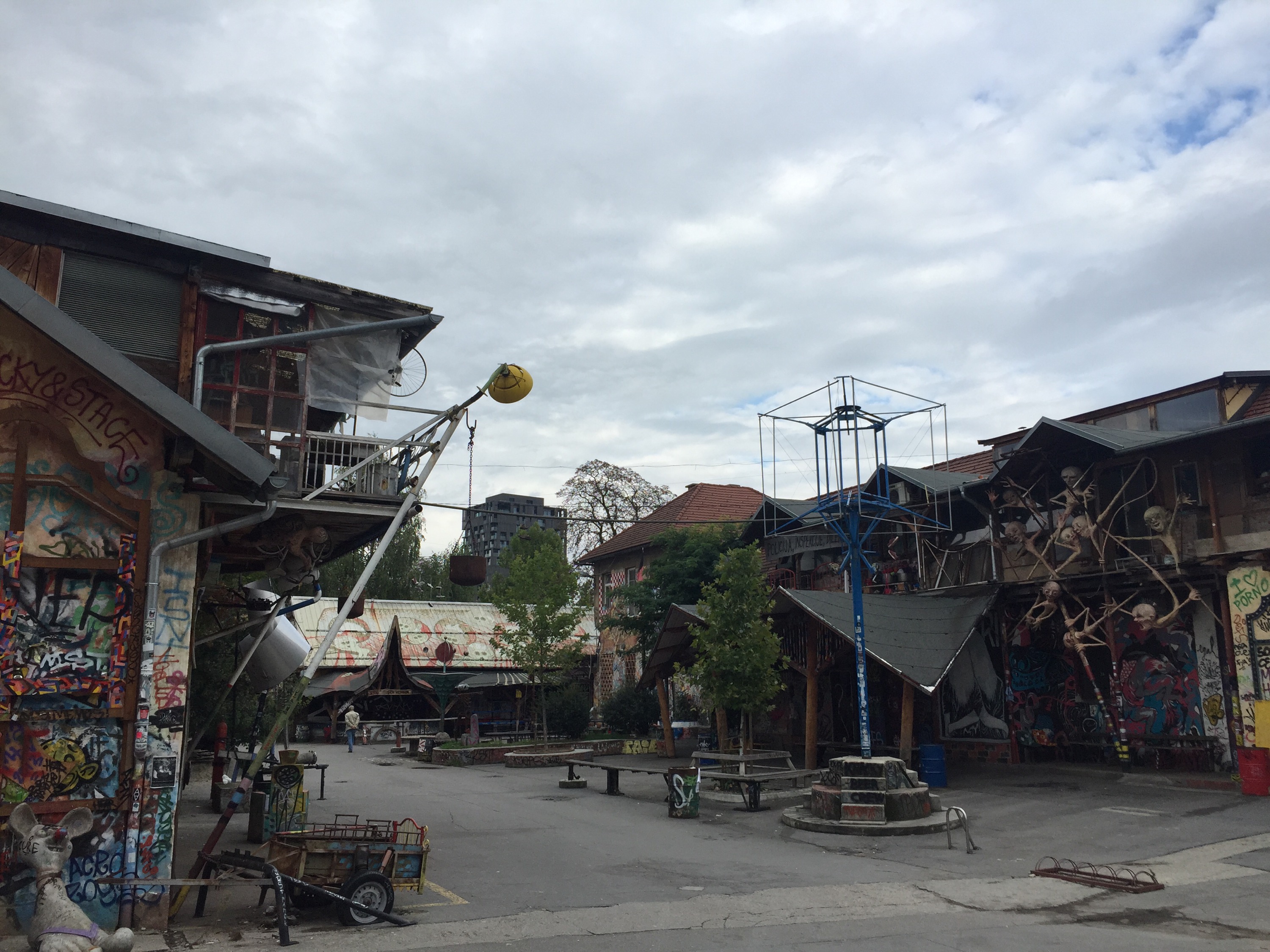 Das normale Ljubljana haben wir schon einmal beschrieben. Heute jedoch waren wir in der Nähe des Bahnhofs in Metelkova. Eine Gegend, welche Teil eines Kasernengeländes der ehemaligen jugoslawischen Volksarmee war. Heute ist es ein kleines autonomes Gebiet für Kultur und Politik. Alles ist besprayt, alles wirkt alternativ. Tagsüber Ausstellungen in Gallerien, nachts Barleben. Unser Geheimtipp in Ljubljana!