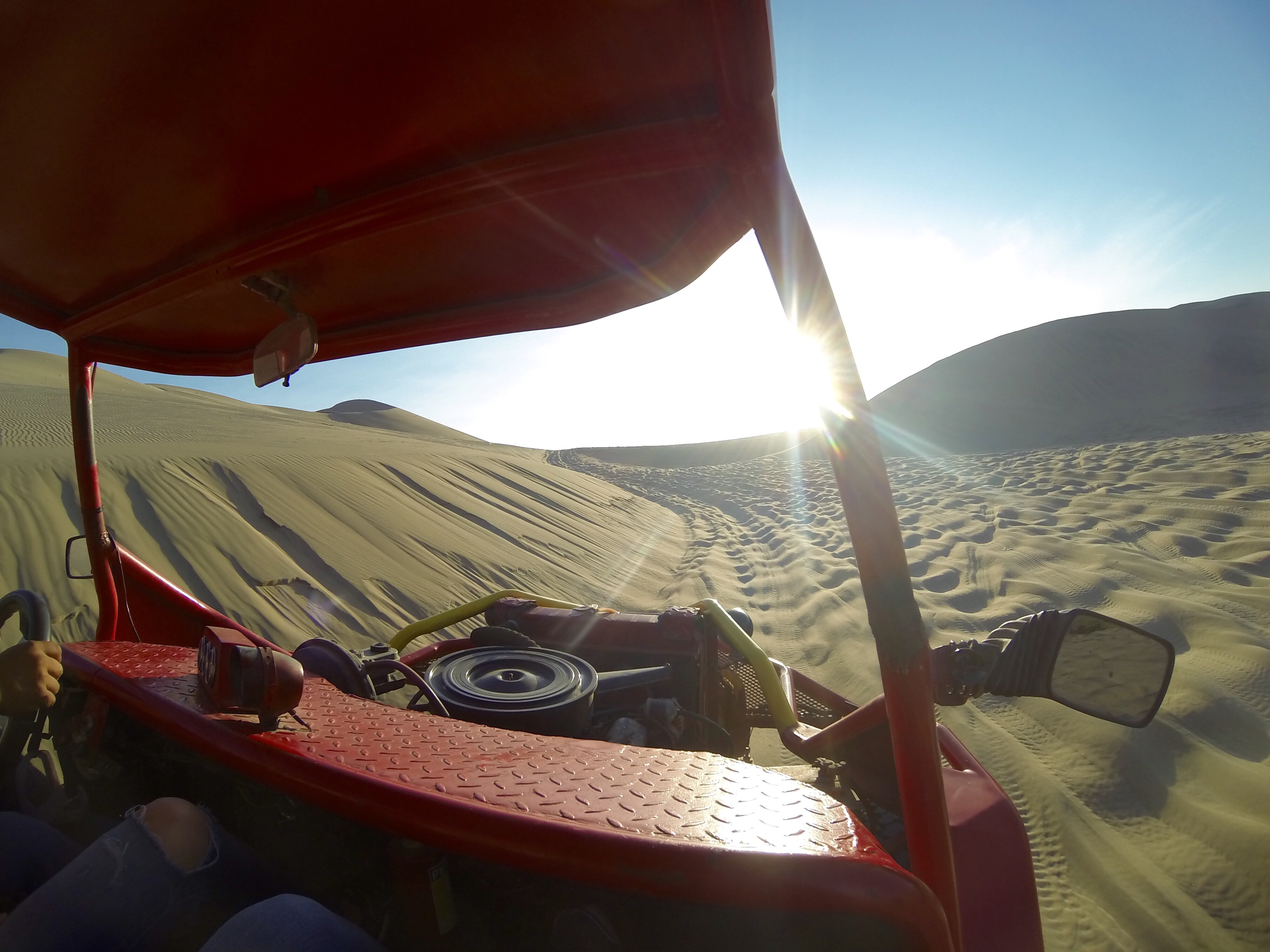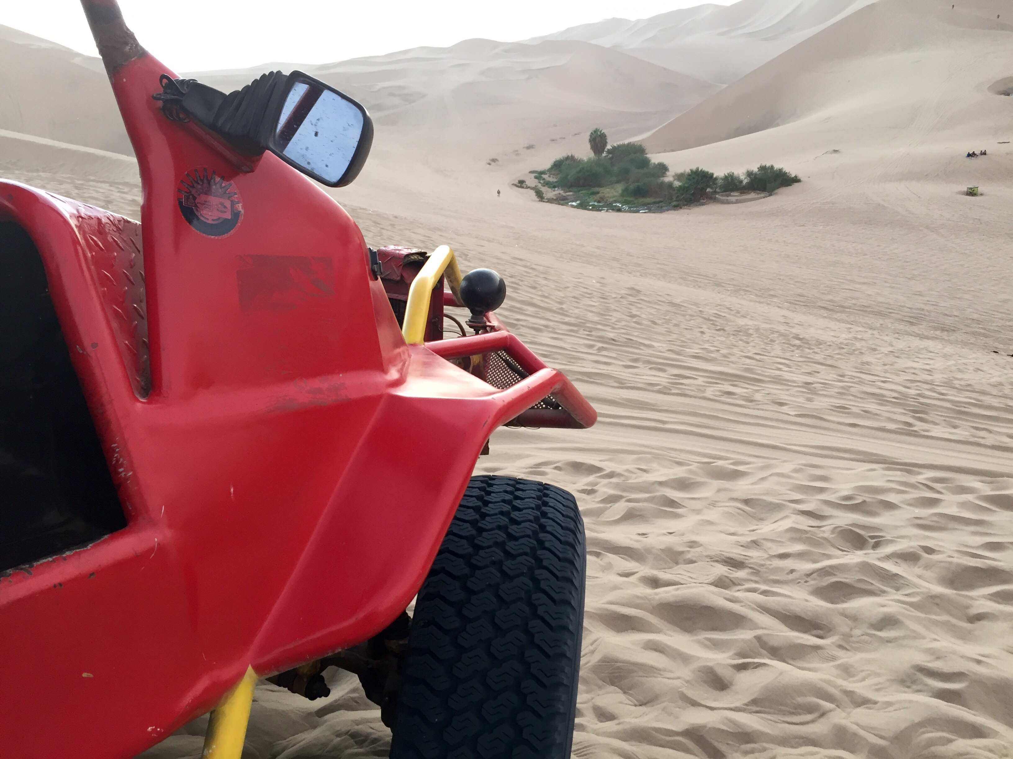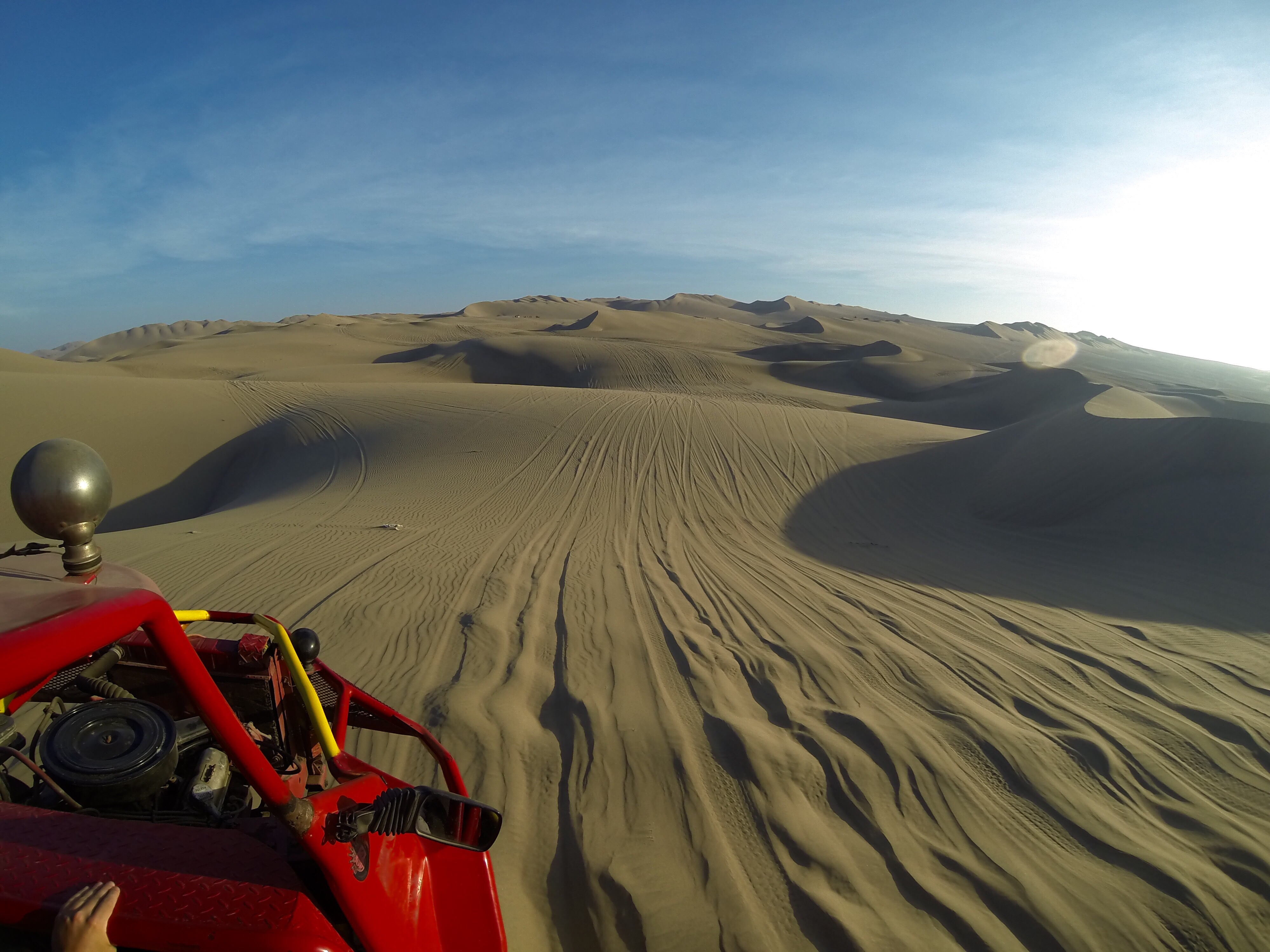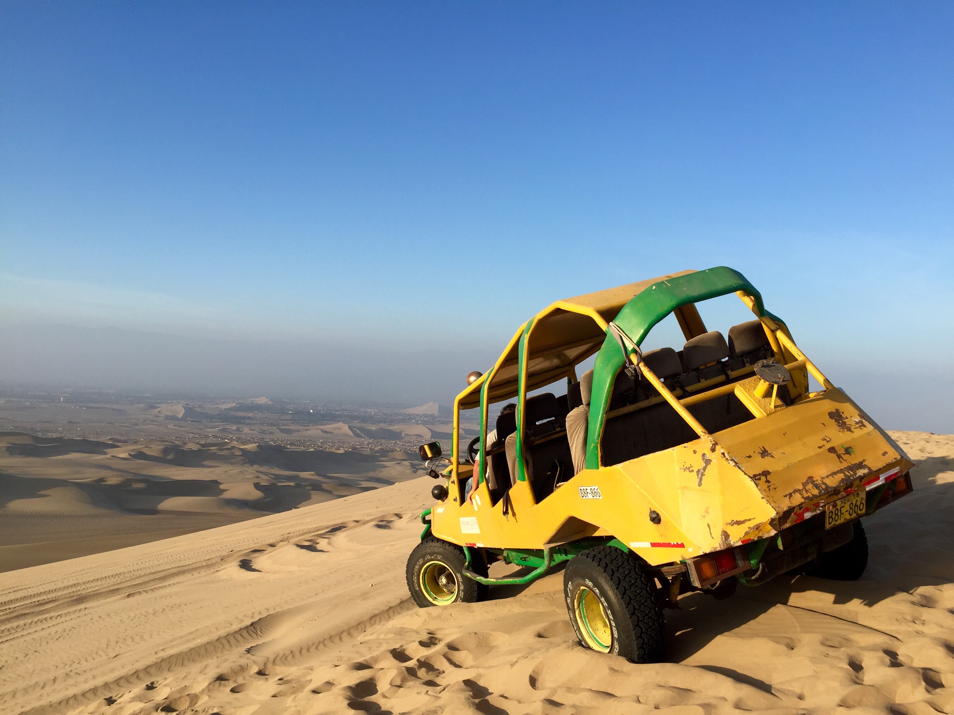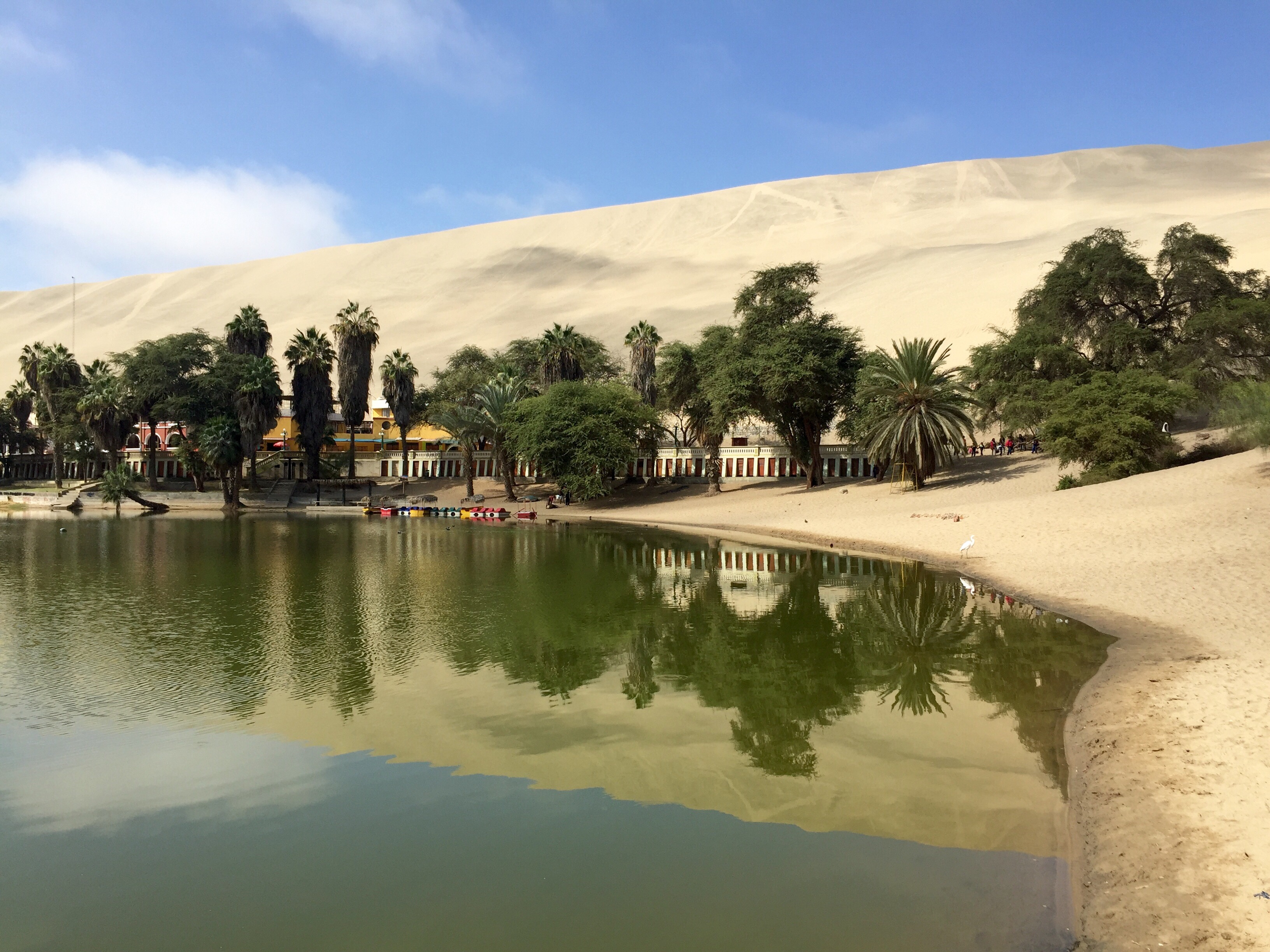 Story: Die kleine Oase in der Nähe von Ica ist ein Touristenmagnet in Peru. Keine 10 Minuten von Smog, Autogehupe und Menschenmassen in Ica entfernt, findet man einen kleinen künstlichen Teich in der Wüste umgeben von ein paar Hostels und Restaurants. Die Lagune ist eher eine Pfütze, klein und dreckig. Nichtsdestotrotz versprüht der Ort ein bisschen Charme. Letztlich überzeugt das Sandboarding und die Dune Baggy Touren. Als Tagesausflug oder eine Übernachtung lohnt es sich alle mal!