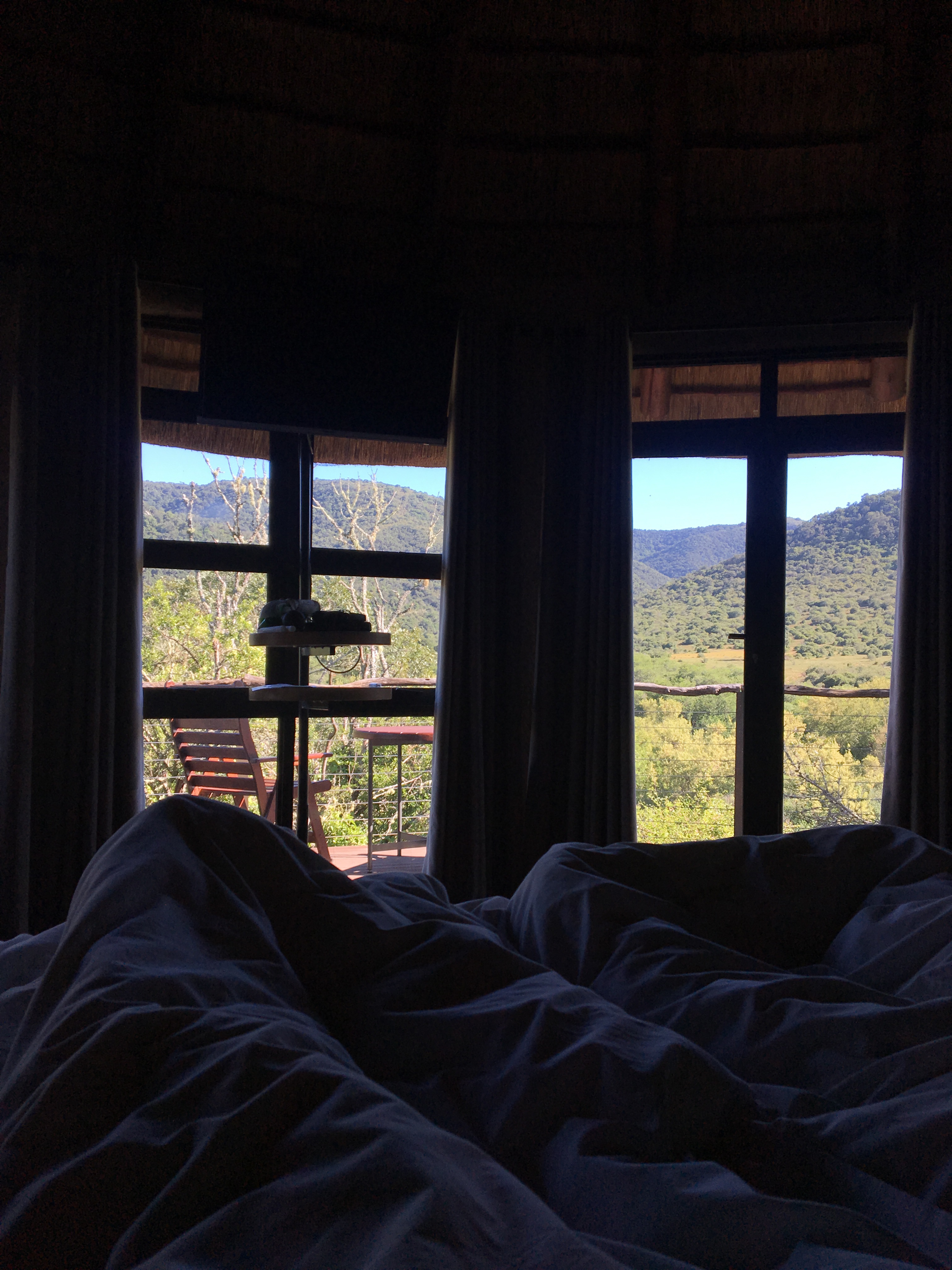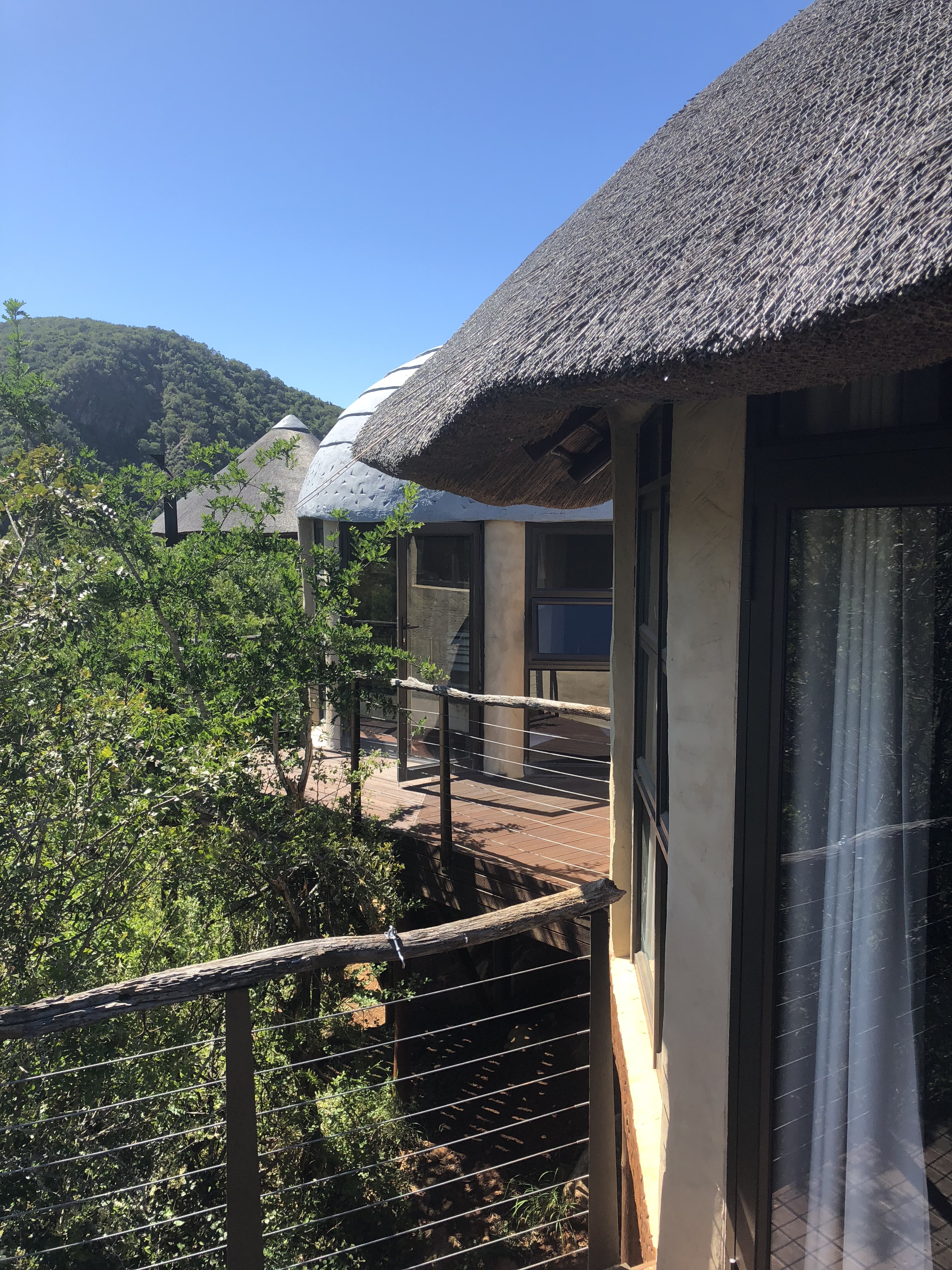 Übernachtet haben wir im Nyathi Rest Camp. Diese runden Häuser sind super schön und haben einen kleinen Pool auf dem Balkon, den wir leider nicht nutzen könnten, da es zu kühl war. Sehr empfehlenswert, da man aus dem Bett direkt in das Tal reinschaut und schon in den ersten Minuten nach dem Aufstehen seltene Tiere beobachten kann. Vorteil des Camps ist, dass es in einem Teil des Nationalparks liegt, wo man sonst nicht hinkommt. Wer unbedingt die geführte Sonnenaufgangs- oder Nachtsafari machen möchte, kann dies nicht tun, da die Ausgangstore nur zwischen 7 – 18 Uhr geöffnet sind.