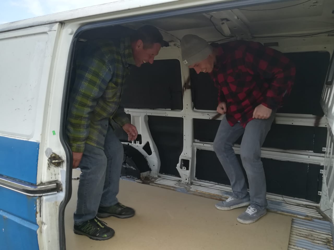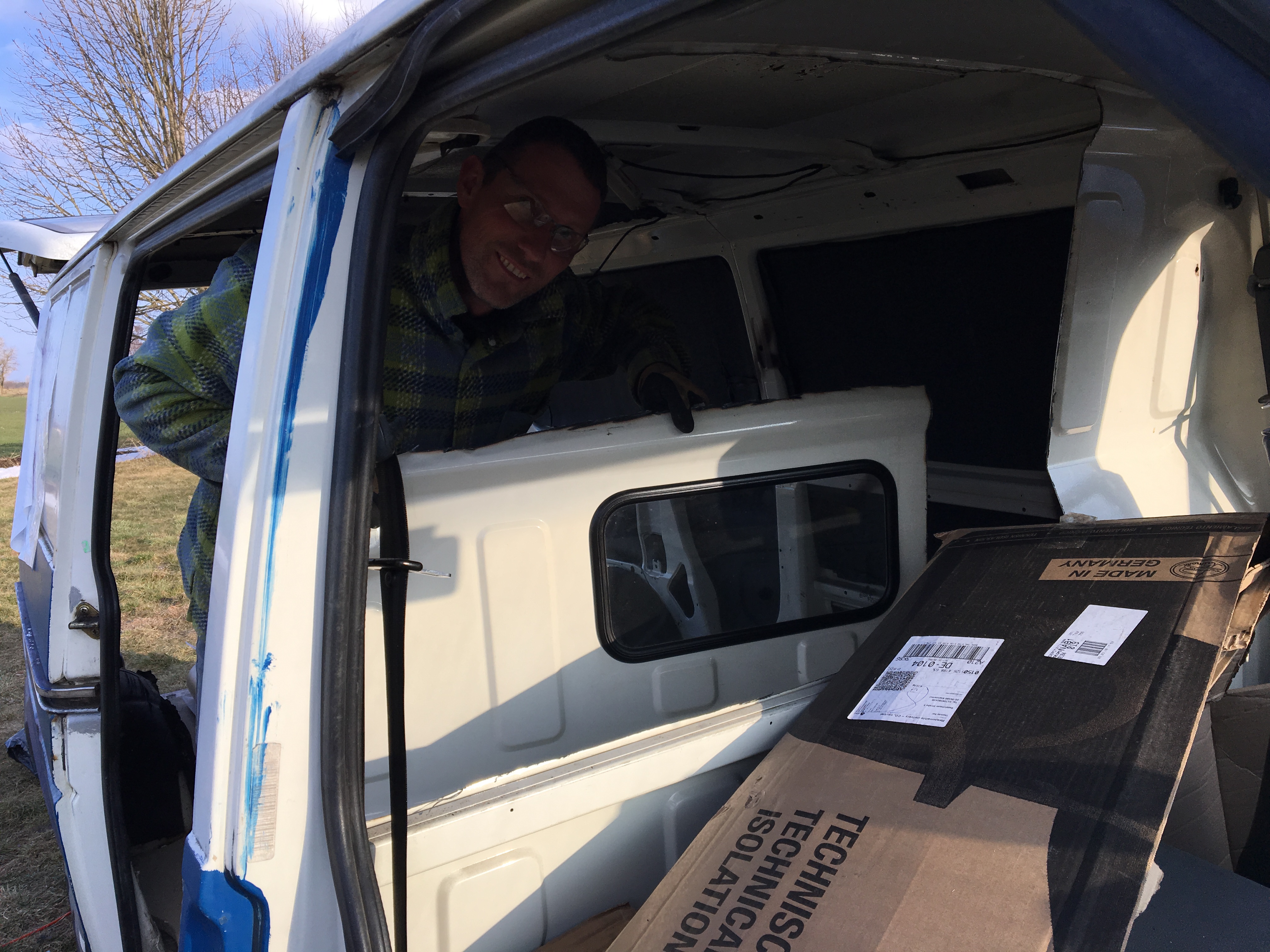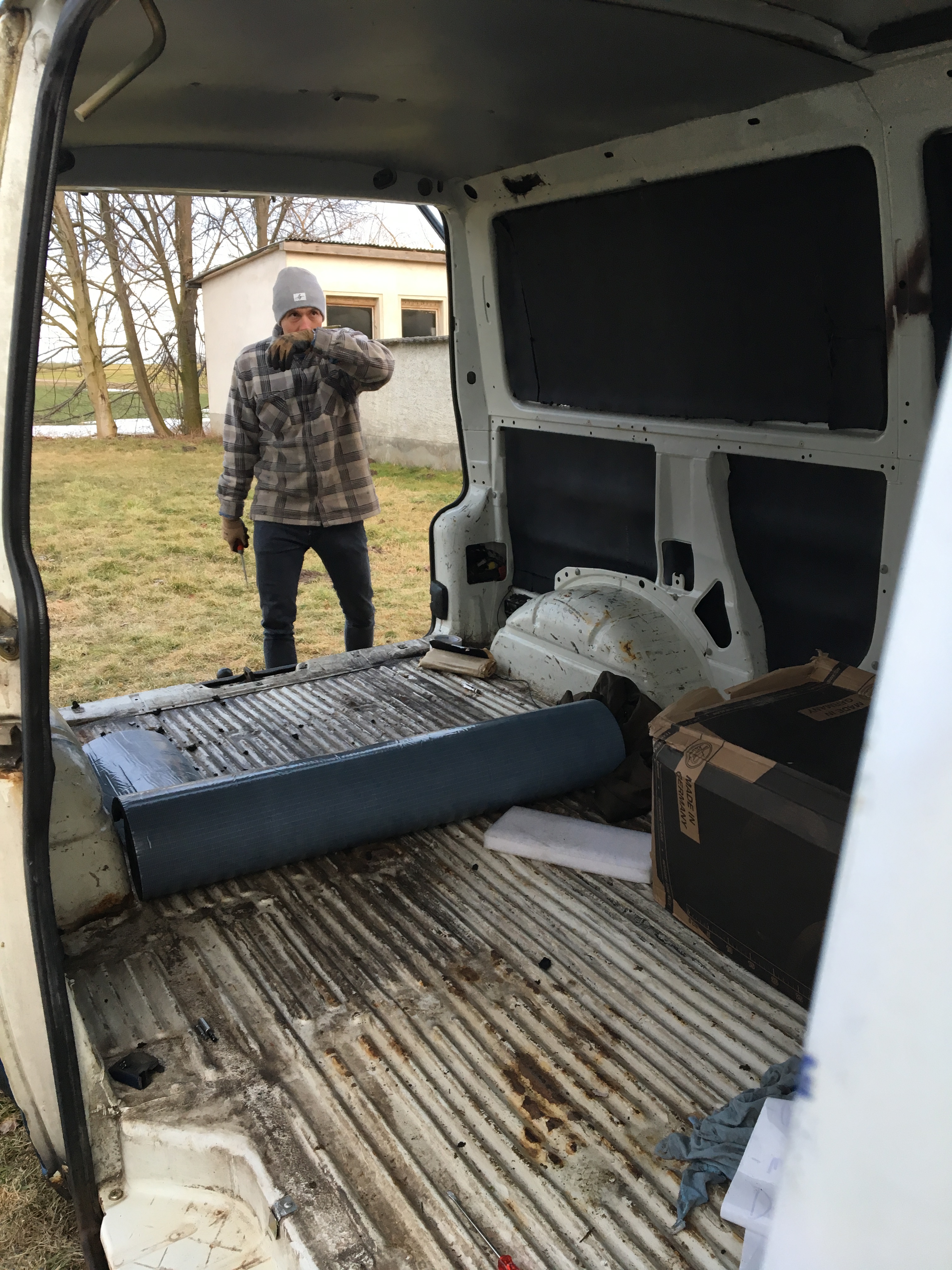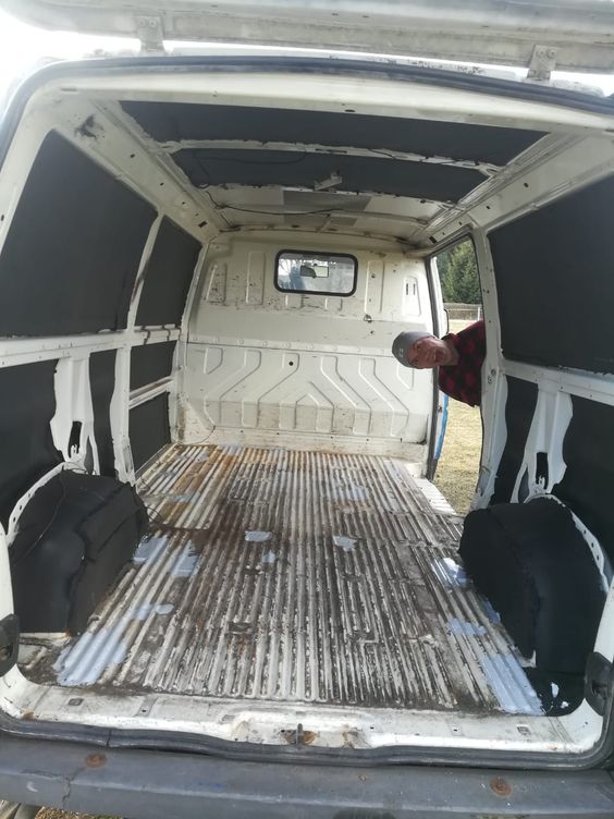 Als ich mir die Rahmenbedingung für mein Sabbatical überlegt hatte, wurde mir bewusst, dass ich zumindest eine gewisse Zeit mit meinem Bus „Emma“ reisen möchte. Da ich im Sabbatical nicht genug Geld haben werde, um eine Tausend-Euro-Reparatur zahlen zu können, ist es auch wie eine Abschiedsfahrt. Ich gehe davon aus, dass ich Emma traurigerweise irgendwann zurücklassen muss. Dann werde ich den neuen Besitzer sehr sorgfältig auswählen. Bisher sah man von innen nur kalten Metallwände, die Fahrerkabine war vom Laderaum abgetrennt, es gab nur ein paar Kisten und die Matratze lag auf dem Boden. Das konnte so natürlich nicht bleiben, wenn ich in dem Wagen leben wollte.