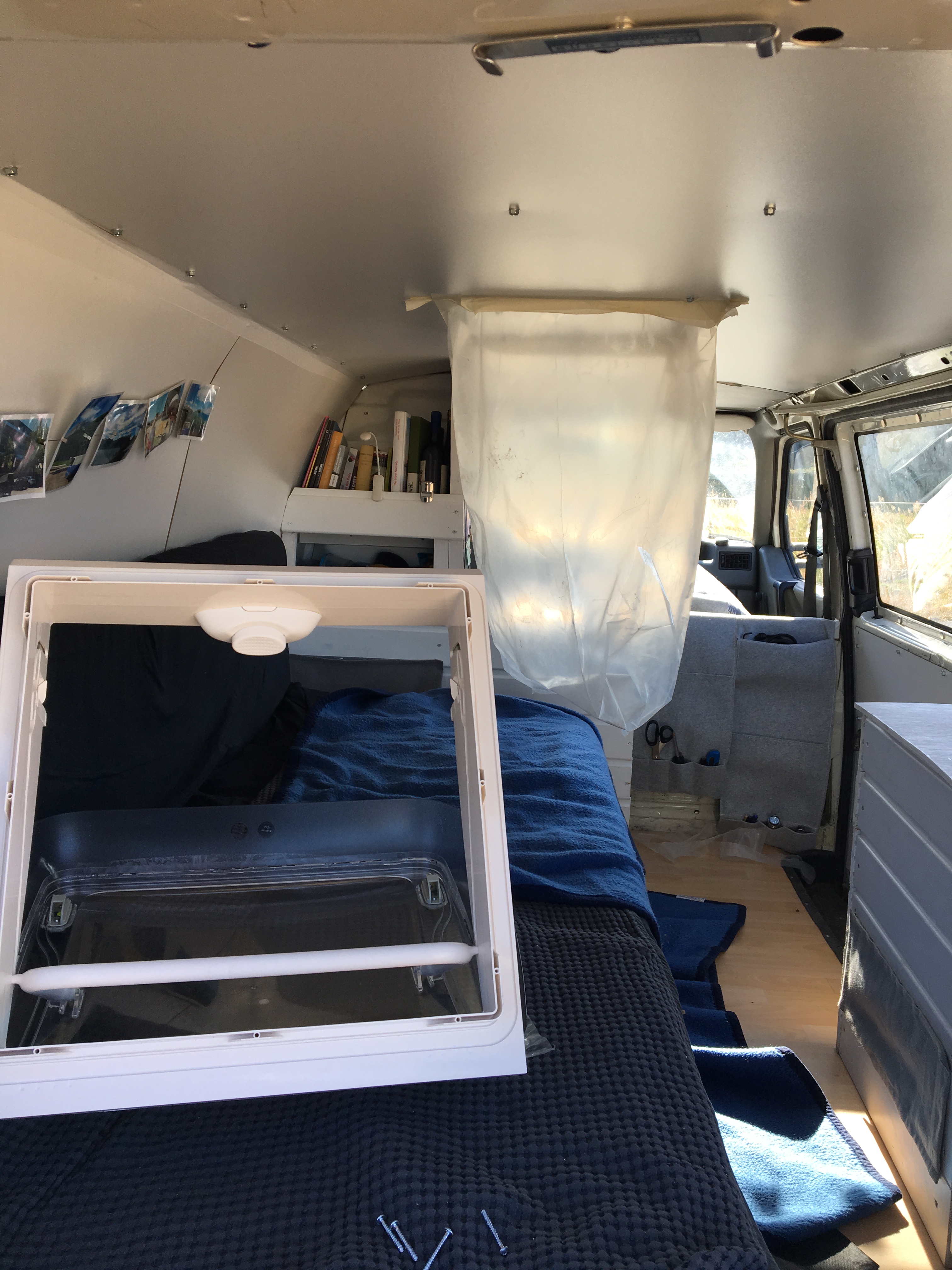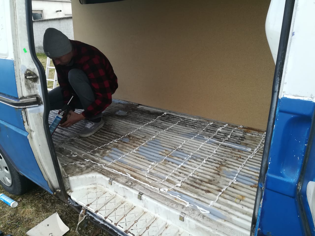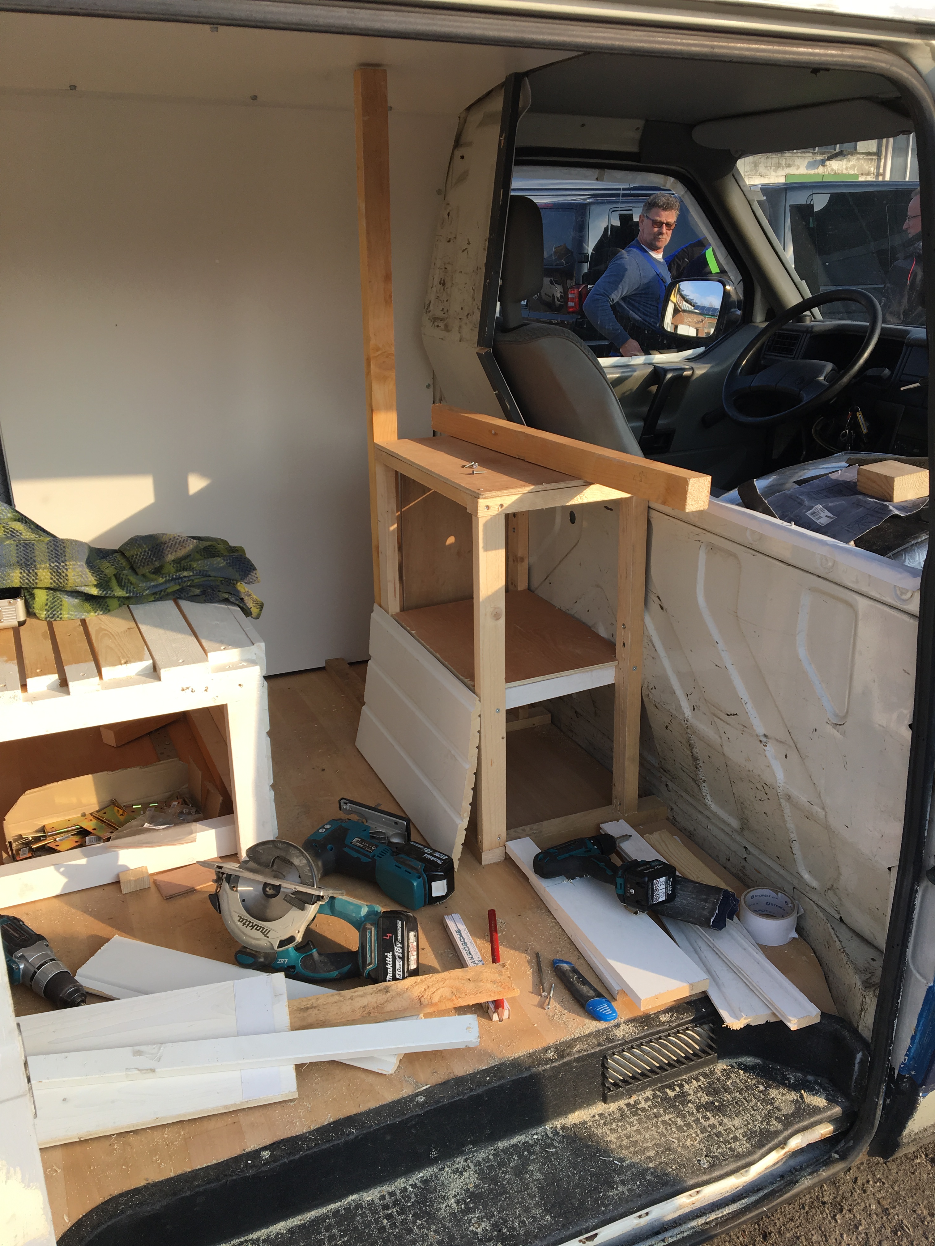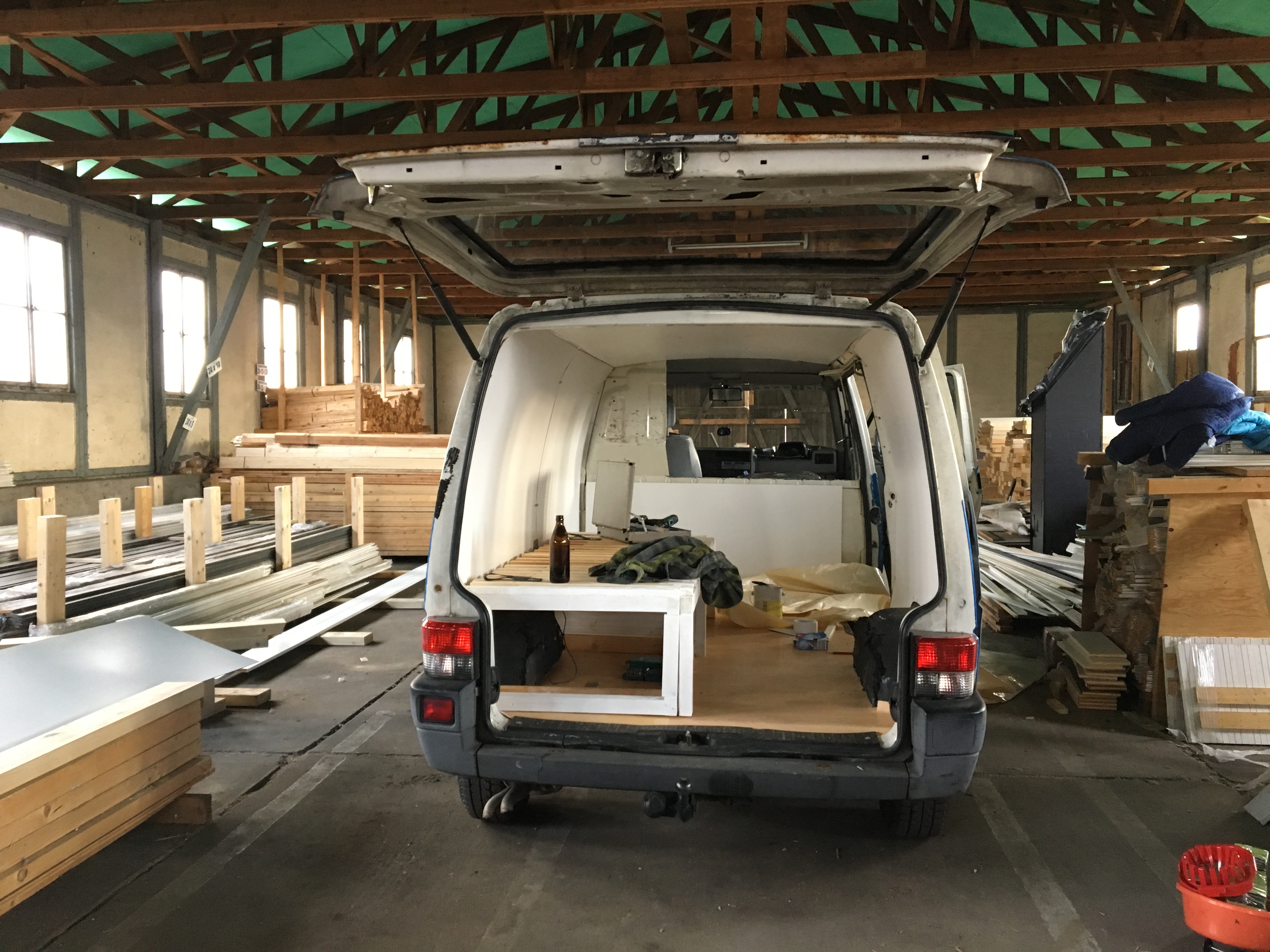 Als ich mir die Rahmenbedingung für mein Sabbatical überlegt hatte, wurde mir bewusst, dass ich zumindest eine gewisse Zeit mit meinem Bus „Emma“ reisen möchte. Da ich im Sabbatical nicht genug Geld haben werde, um eine Tausend-Euro-Reparatur zahlen zu können, ist es auch wie eine Abschiedsfahrt. Ich gehe davon aus, dass ich Emma traurigerweise irgendwann zurücklassen muss. Dann werde ich den neuen Besitzer sehr sorgfältig auswählen. Bisher sah man von innen nur kalten Metallwände, die Fahrerkabine war vom Laderaum abgetrennt, es gab nur ein paar Kisten und die Matratze lag auf dem Boden. Das konnte so natürlich nicht bleiben, wenn ich in dem Wagen leben wollte.