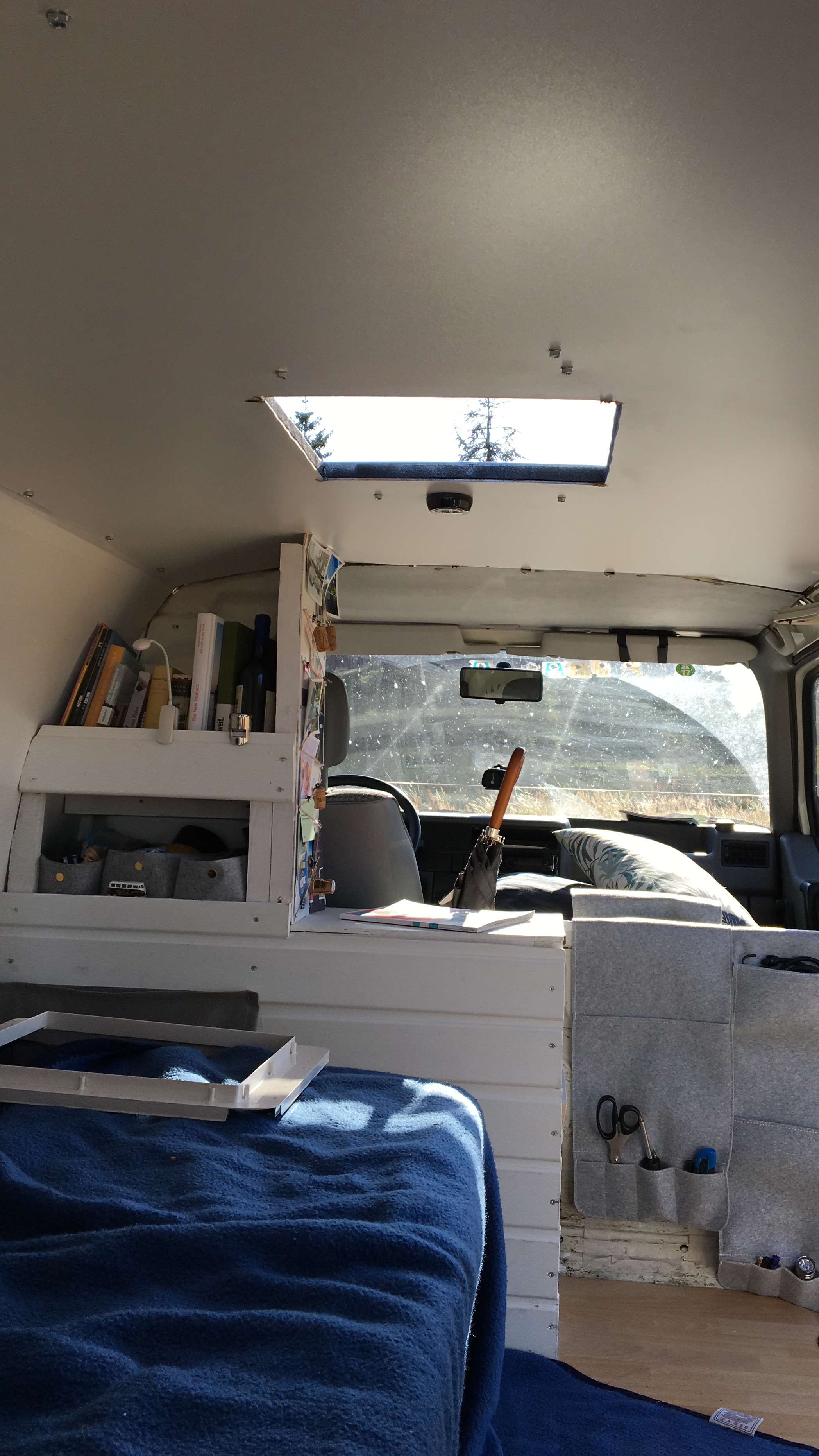 Schnell wurde ich bei meiner Ideensuche zum Pinterest-Junkie. Ich hatte mir geplant viel Stauraum zu bauen. Es sollte aussehen wie ein rollendes Wohnzimmer. Ich wollte mich einfach wohlfühlen. Zudem sollte es eine Bibliothek geben, ein flexibles Bett, was man auch schnell aus dem Bus entfernen kann, um Emma als Transporter zu nutzen. Außerdem wollte ich mehr Licht im Auto.