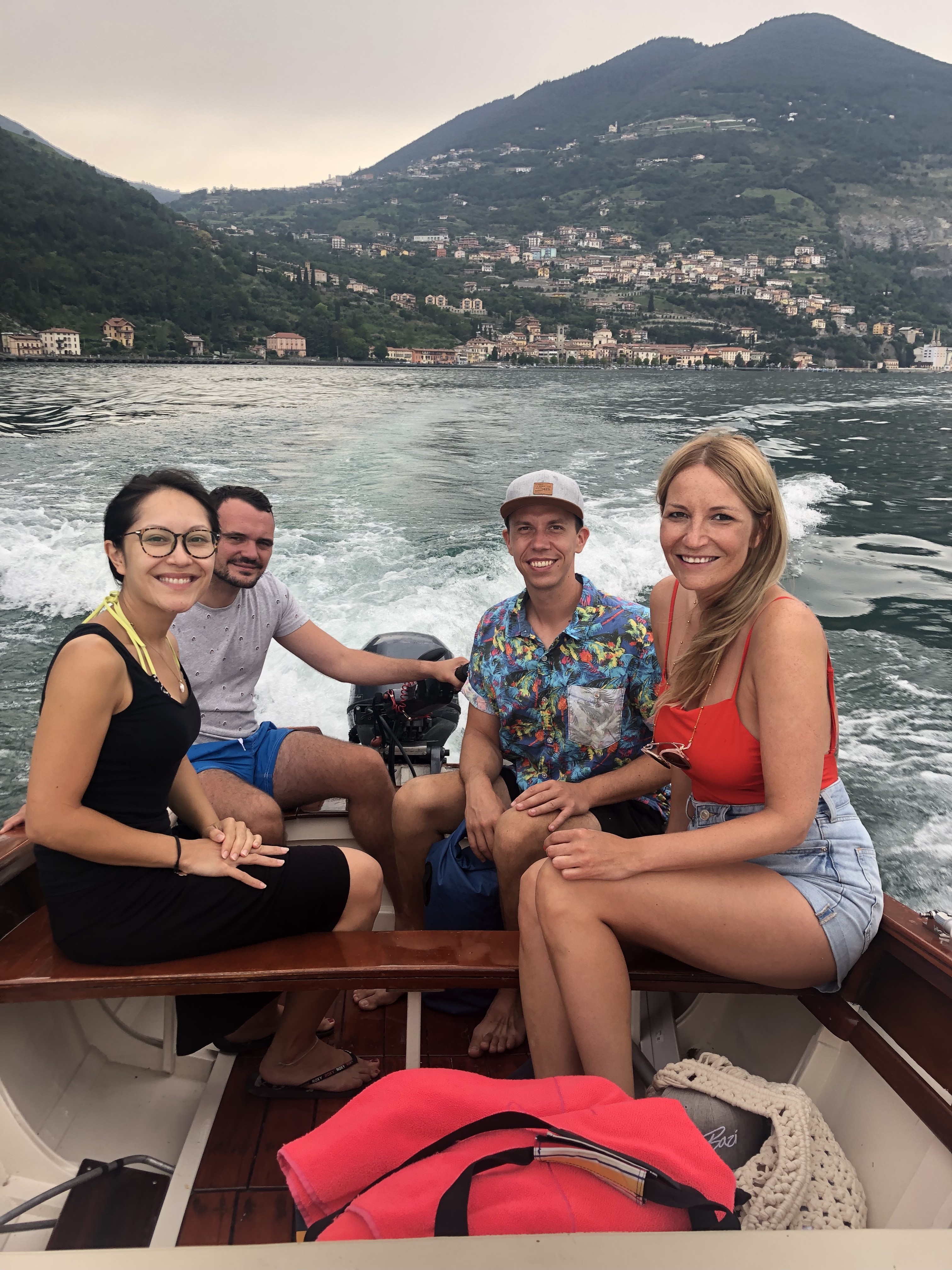 Story: Von Venedig an wollten wir uns langsam nach Osten kämpfen. Dann kam das Angebot von Freunden sie am Iseosee zu besuchen. Das sind mehr als 4 h Fahrt von Venedig, heißt in Summe 8 h Umweg. Wir haben lange hin und her überlegt, da es unlogisch wäre es zu tun. Letztlich haben wir uns dazu entschlossen zum Lago d’Iseo zu fahren, schließlich haben wir viel Zeit. Neben hauptsächlich quatschen, sind wir noch ein wenig Boot gefahren, haben am Pool gechillt und hatten den ein oder anderen Weinexzess. Zum einem war es schön gewohnte Gesichter zu sehen und zum anderen war der See mit seinem Bergpanorama einfach nur traumhaft. Wir hatten das Gefühl, dass hier nur Italiener Urlaub machen.