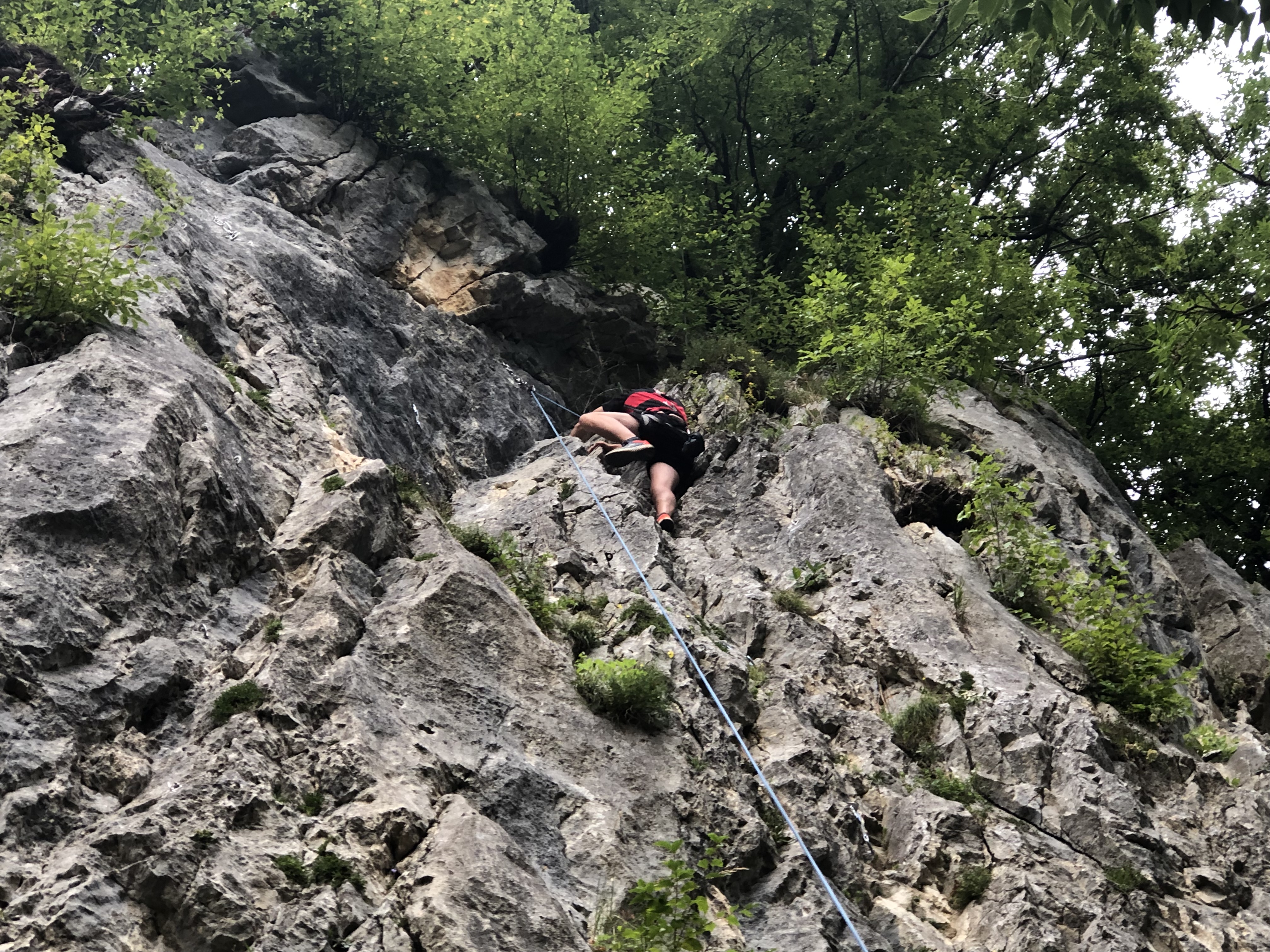 Bevor es jedoch nach Bled ging, sind wir mit Jakob und Swantje nach Dovje gefahren. Wir hatten sie am Jasna See kennengelernt und sie haben uns spontan zum Klettern eingeladen. Trotz mangelnden Talents hatte ich eine Menge Spaß mich meinen Ängsten zu stellen. Für Sarah war es das erste mal klettern und sie hat sich besser geschlagen. Es hat sich gut angefühlt Pläne über den Haufen zu werfen und neue Dinge auszuprobieren. Dafür soll unser Sabbatical da sein. In einem Jahr werden wir uns wohl nicht mehr an die Kirche auf der Insel in Bled erinnern, jedoch an unsere Klettererfahrung mit Jakob und Swantje 🙂