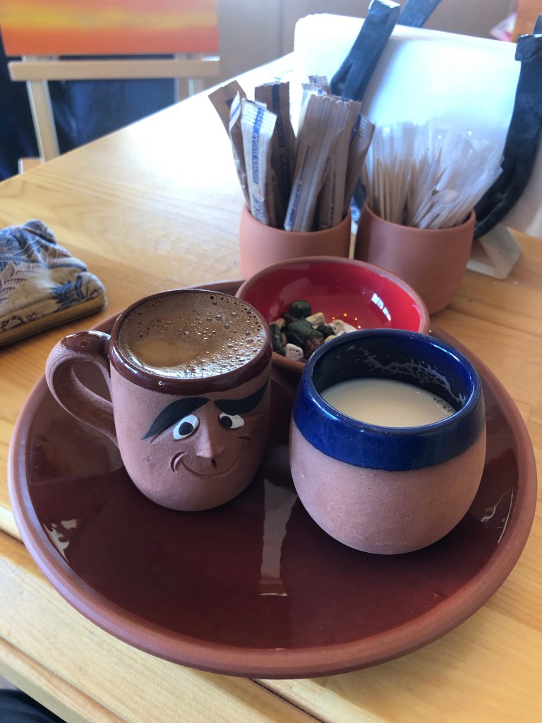 In Istanbul haben wir uns mit kanadischen Freunden getroffen. Verwundert haben sie mich gefragt wie ich denn diesen komischen Kaffee mögen kann, schließlich hat man immer den Kaffeesatz im Mund. Hierbei gilt es einfach zu beachten, dass ihr den Kaffee etwas ziehen lässt. So setzt sich der Kaffeesatz am Boden ab und ihr habt das Kaffeepulver nicht zwischen euren Zähnen 😊. Türkischer Kaffee ist feiner gemahlen als Espressokaffee. Zuerst wird Wasser in einem Ibrik-Gefäß zum Kochen gebracht. Sobald es kocht wird das Pulver hinzugeben und man lässt es kurz aufkochen. Vorsicht! Wenn ihr nicht aufmerksam seid, kocht der Kaffee schnell über und verteilt sich in eurem ganzen Zimmer oder in unserem Fall in der Emma. Oft wird der aufgekochte Kaffee kurz für eine Minute abgekühlt und dann nochmals aufgekocht. In der Türkei wird der Kaffee meist nach der Mahlzeit getrunken. Ein Stück Baklava dazu schmeckt einfach super.