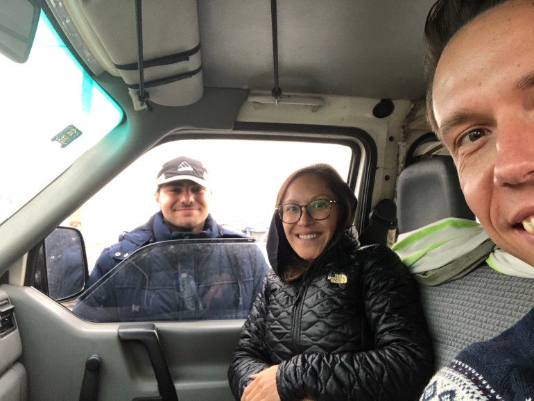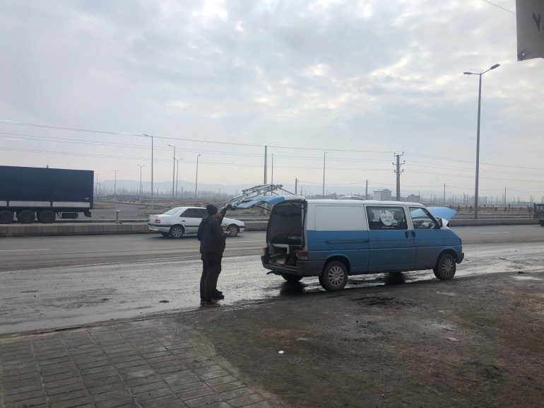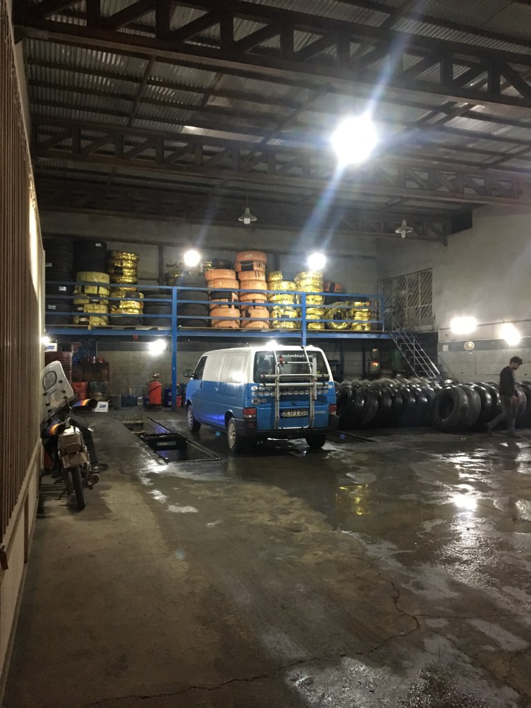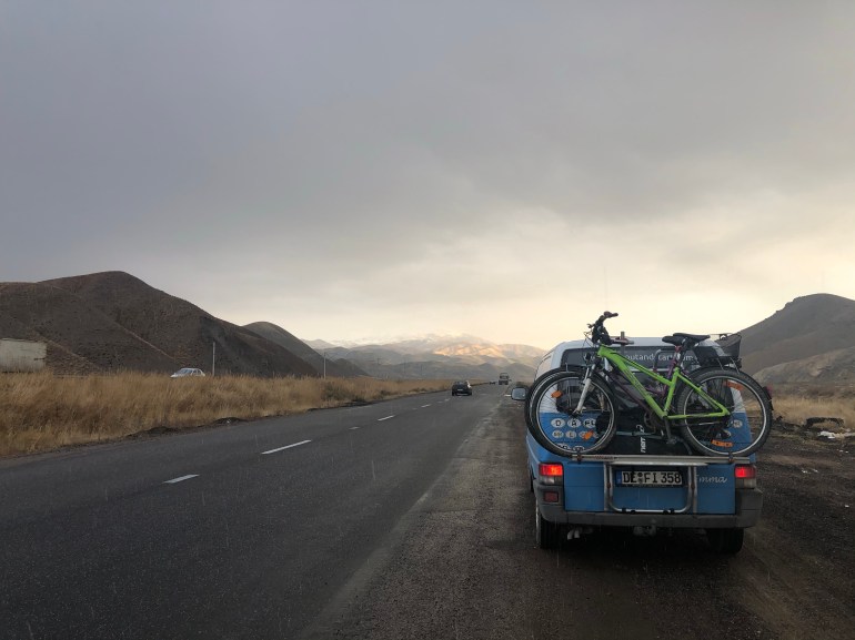 Anschließend hat uns unser neuer Freund noch weiter zur Tankstelle begleitet. Wir haben vollgetankt und uns gefreut, dass wir für einen vollen Tank 10 € bezahlt haben. Die Freude hielt nicht lang. Nach 20 km bemerkte ich, dass irgendetwas an der Emma nicht richtig funktioniert. Es hat immer wieder geruckelt und der Motor machte komische Geräusche. Dann fuhren wir über eine Bodenschwelle… Im Rückspiegel sah ich nur noch den Fahrradträger samt SUP und Rädern davonfliegen. Zum Glück war keiner hinter uns. Es waren fast 0 Grad und es hat geregnet. Alles war matschig und ich habe versucht den Träger für die Weiterfahrt gerade zu biegen. Währenddessen haben wir Emma umgeparkt und beim Anlassen die Probleme bemerkt. Der Geistesblitz kam schnell. Der Tankwart hat Benzin eingefüllt und die nächste Stadt war Khoy (dort, wo wir Geld getauscht hatten). Ich war selten im Leben so sauer. Mein Körper war energiegeladen, der Kopf voller Aggressionen. Ich habe gebrodelt und wollte explodieren. Dadurch lösen sich die Probleme aber auch nicht. Wir haben die Fahrräder angeschlossen und sind betend, dass alles gut geht, die 25 km zurück nach Khoy gefahren. Dort haben wir die erste Werkstatt aufgesucht. Masoud, der Mechaniker, konnte türkisch. Also haben wir unsere Familie in Cavusin angerufen, die dann alles für uns übersetzt hat.