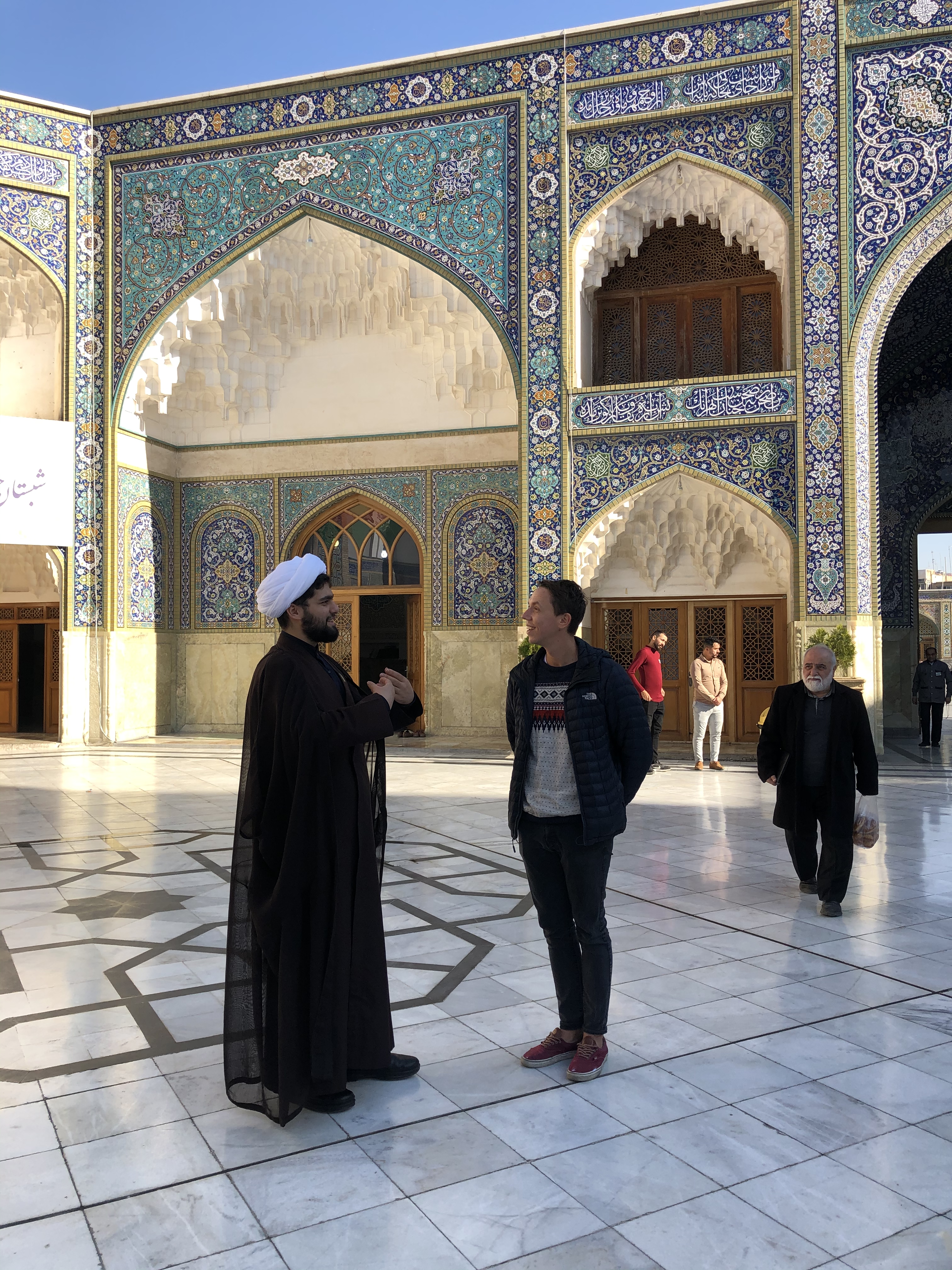 Story: Auf unserem Weg von Teheran nach Kashan haben wir in Ghom (auch Qom) gehalten. Nichts ahnend und ohne Erwartungen sind wir ein wenig durch die Stadt geschlendert. Und dann waren wir am Fatima Masumeh Schrein. Dies gilt als 2. heiligster Ort im Iran, nach Mashhad. Unglaublich dieses Bauwerk!!! Besonders toll fanden wir Mohammed. Mohammed ist ein Mullah, islamischer Religionslehrer. Er hat uns durch die Anlage geführt (kostenfrei). Er war super aufgeschlossen, fröhlich und unterhaltsam. Wir haben die Zeit mit Mohammed genossen und durften dabei viel über Religion und Ethik lernen.