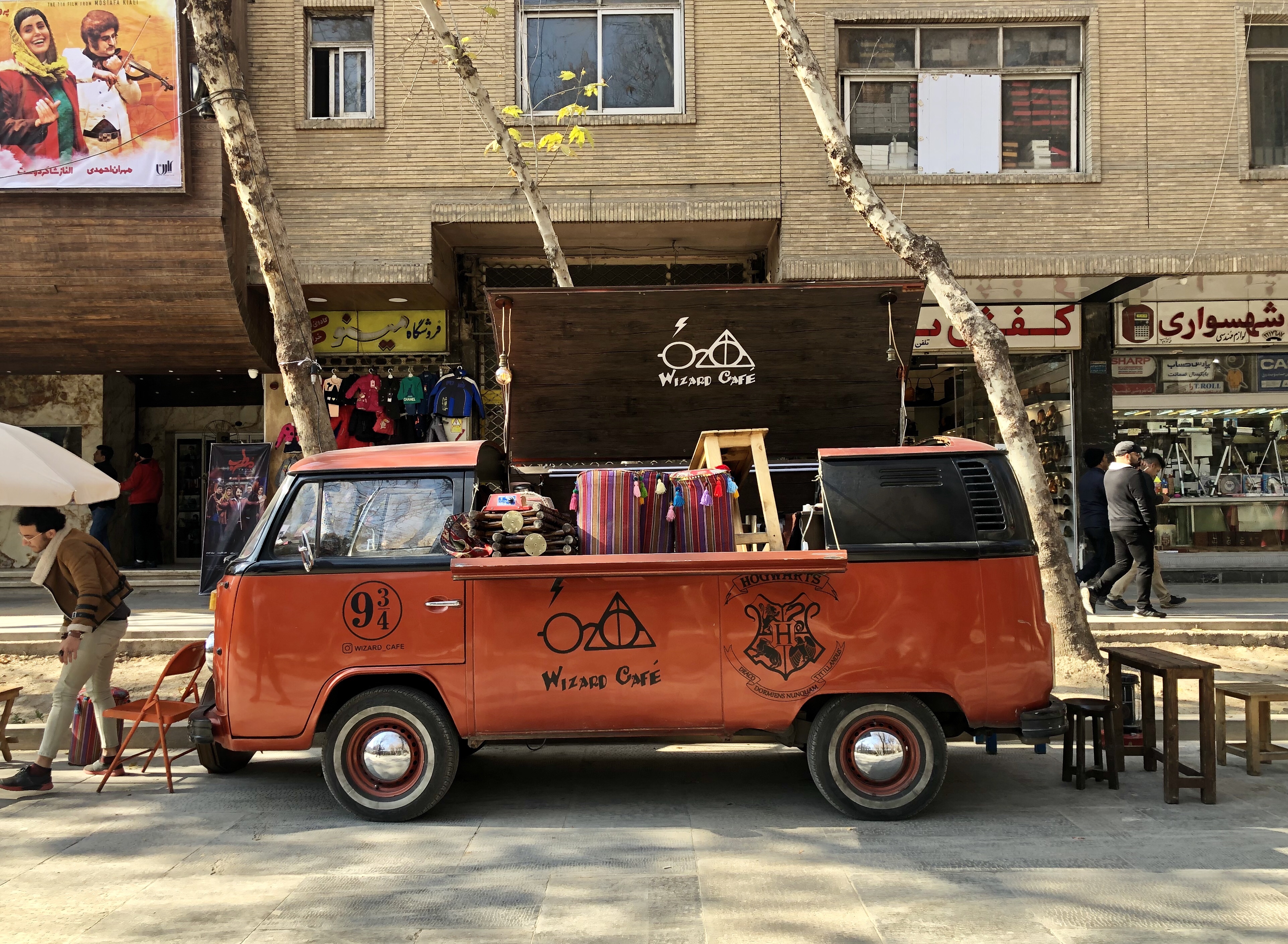 - in der Fußgängerpassage Chahar Bagh e Abbasi Straße gibt es ein paar Cafes in VW T2 Bussen, bspw. das Wizard Cafe und Van Cafe