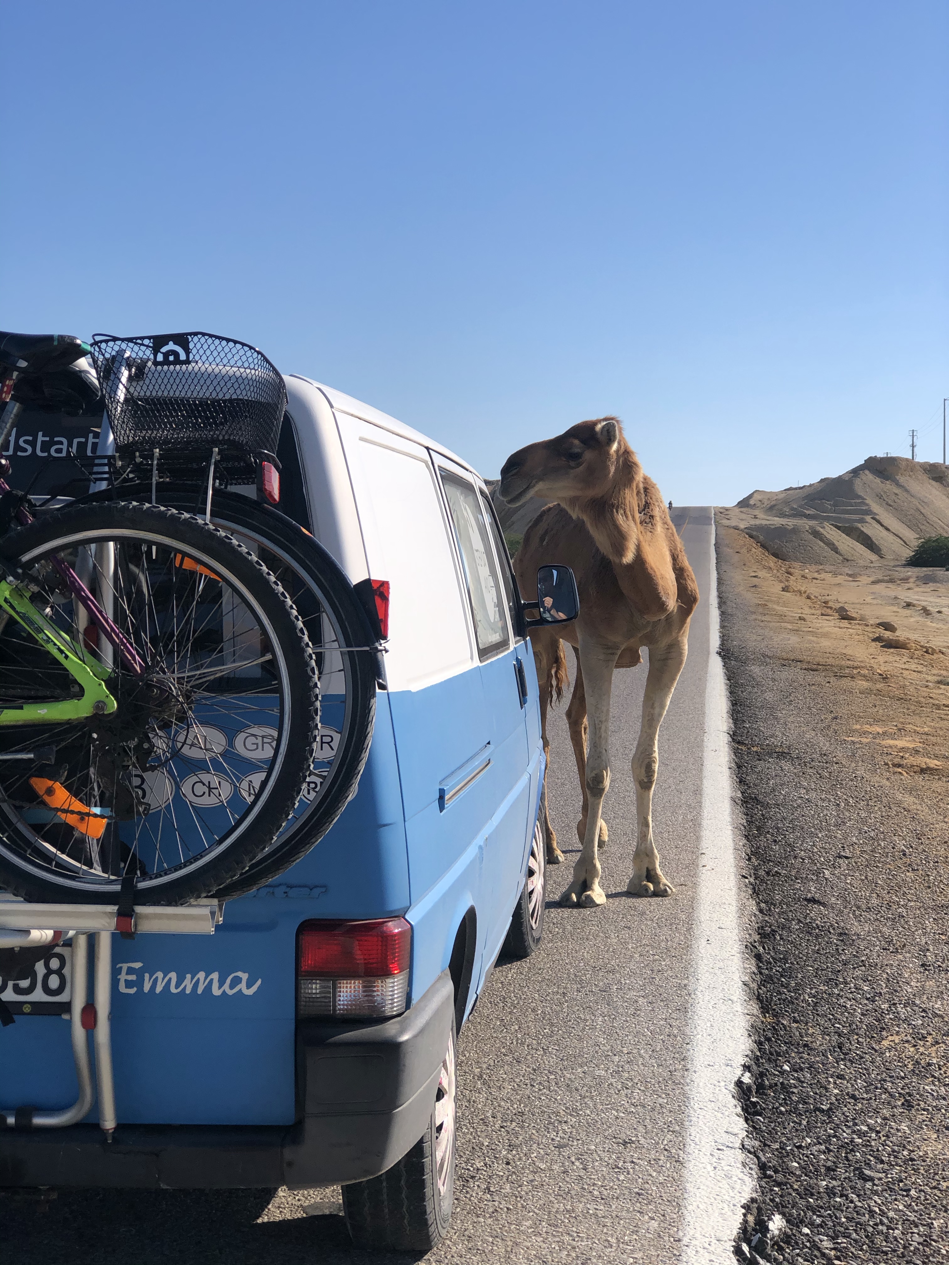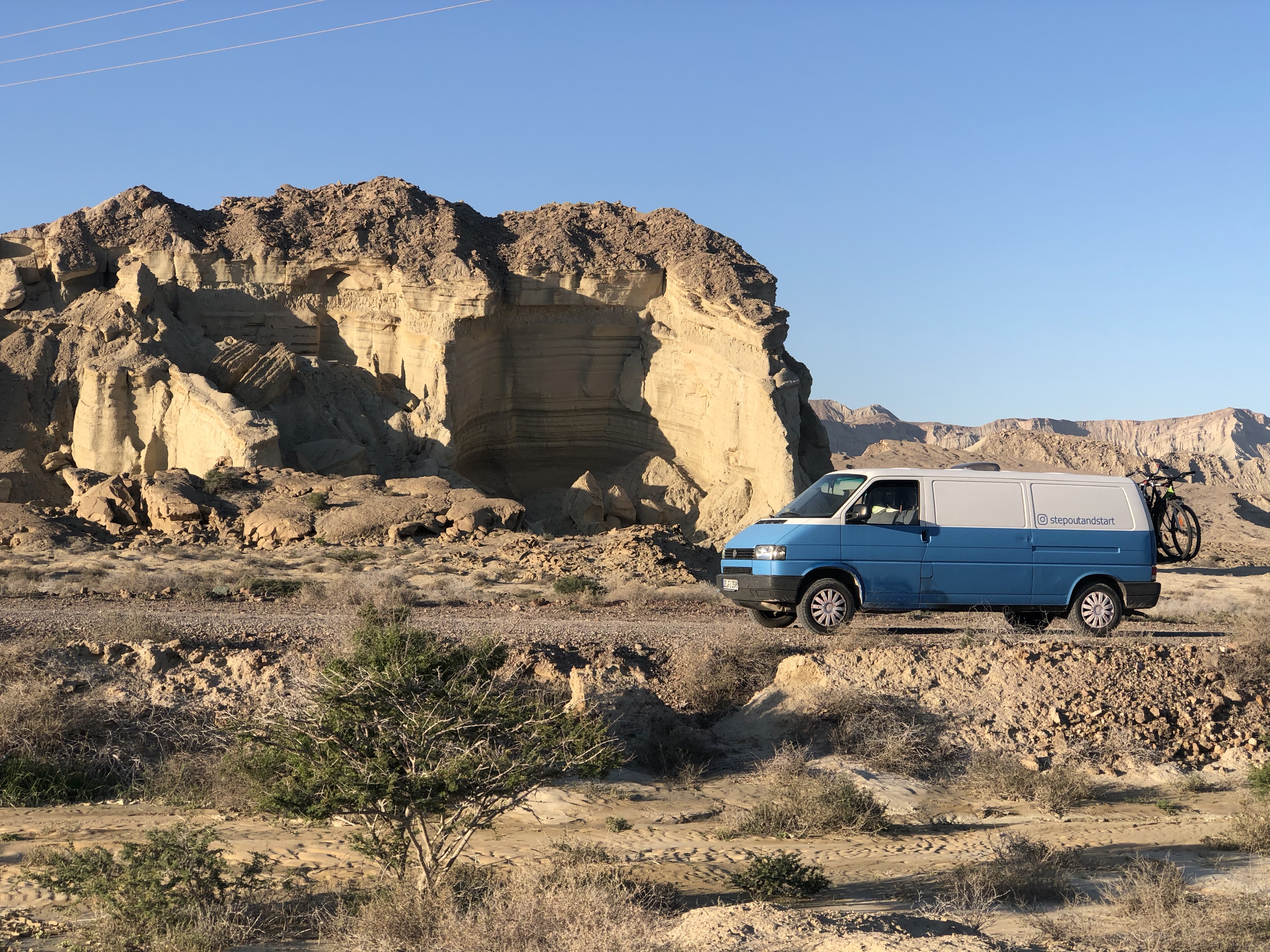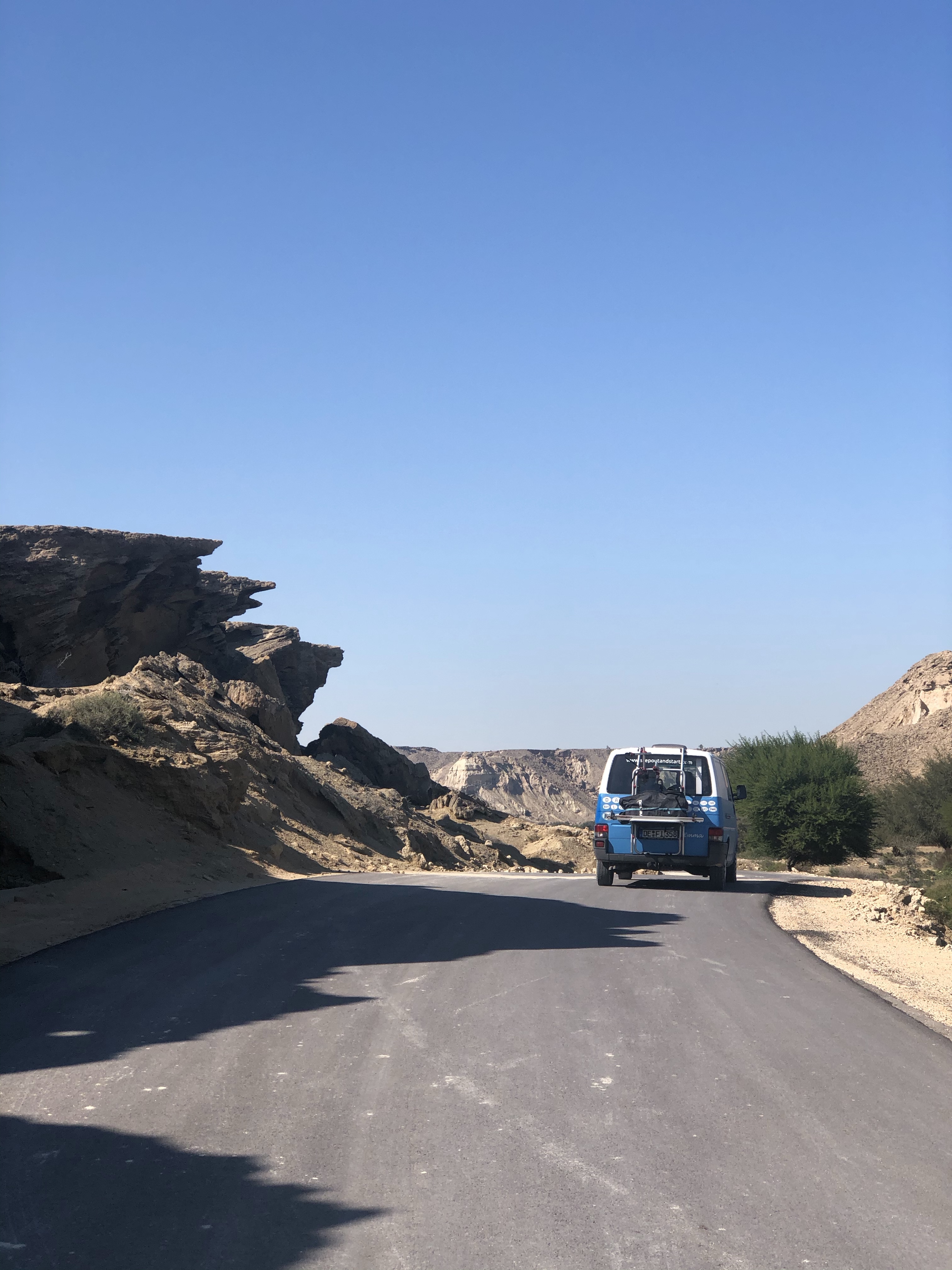 Story: Die größte Insel Irans ist Qeshm (ca. 2,5-mal so groß wie Bahrain). Um uns die Insel live anzuschauen, sind wir gut 9 h von Shiraz unterwegs gewesen. Da wir mit Emma einreisen wollten, mussten wir die Fähre von Bandar-e-Pol nach Laft nehmen. Als Backpacker reist man von Bandar Abbas nach Qeshm Stadt. Da Qeshm eine Freihandelszone ist, mussten wir ein bisschen Papierkram erledigen, um mit dem Auto einreisen zu können. Übrigens, wenn man von bspw. Dubai nach Qeshm fliegt und die Insel nicht verlässt, braucht man kein Visum für den Iran. Das sollte zumindest für alle Briten und Amerikaner interessant sein.